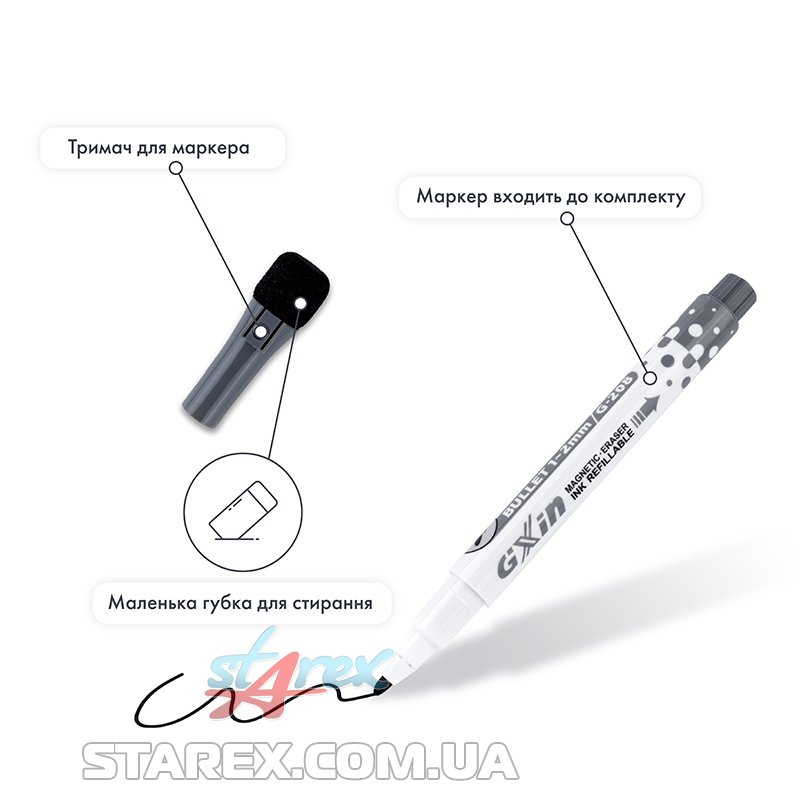 В комплекте есть сухостиральный маркер и держатель для удобного крепления