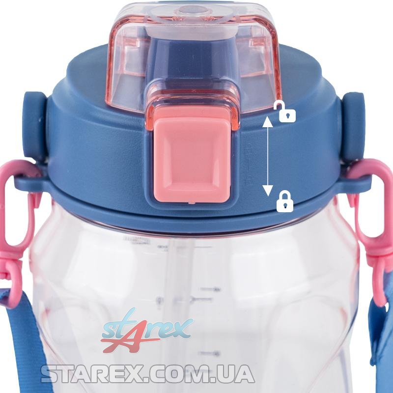 Кришечка надійно закривається, не даючи воді проливатися, а також захищає мундштук від забруднень. Фіксатор блокує кришечку, захищаючи від мимовільного відкриття.