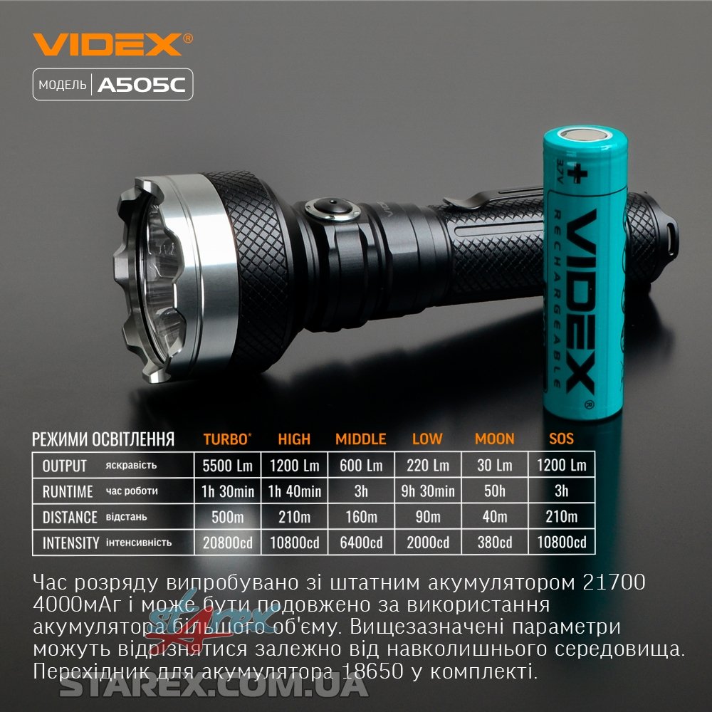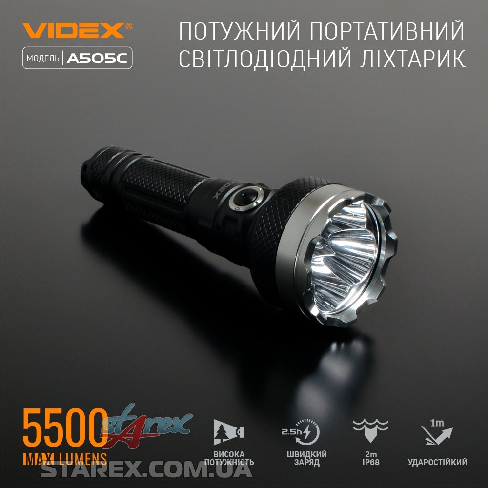 Портативний світлодіодний ліхтарик VIDEX VLF-A505C 5500Lm 5000K