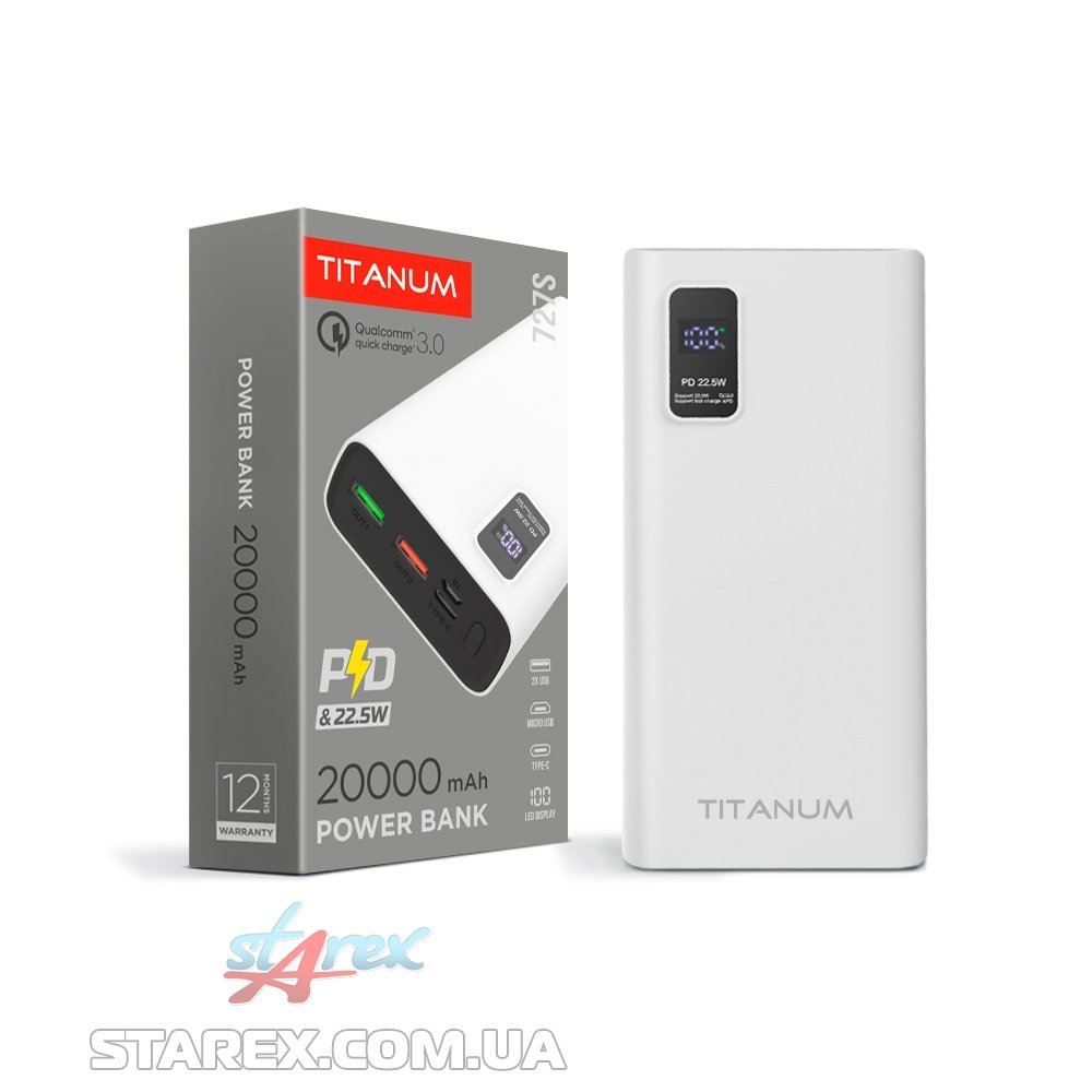 Повербанк TITANUM 727S 20000mAh 22.5W White