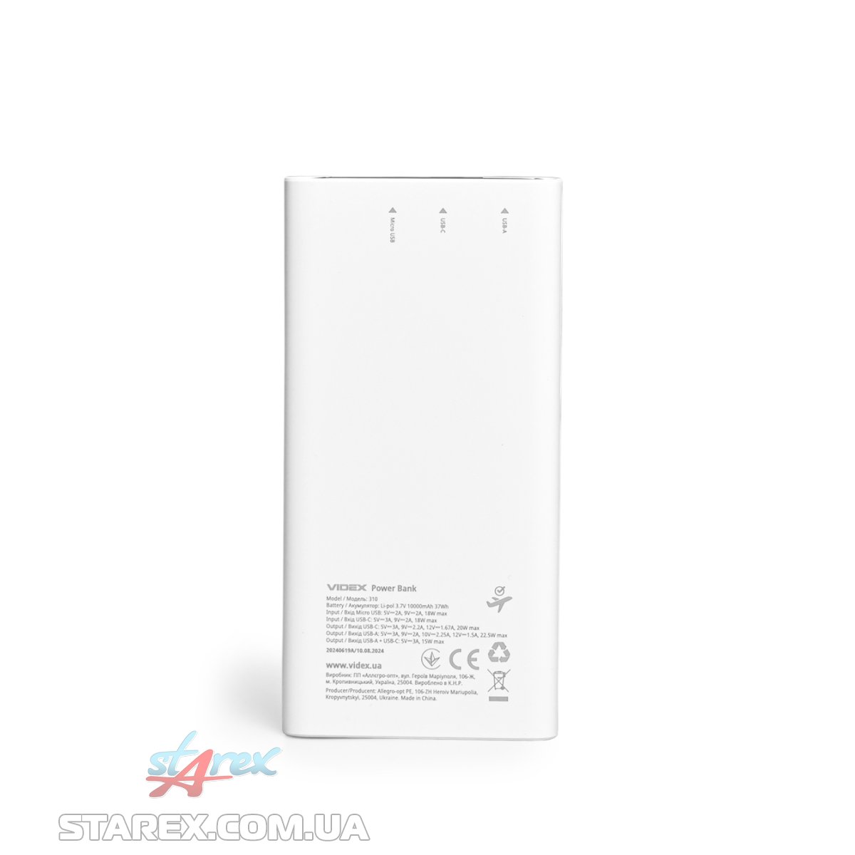 Повербанк VIDEX VPB-310 має ємність 10000mAh і максимальну вихідну потужність 22.5W. Цей акумулятор оснащений літій-полімерною батареєю 3.7V (37Wh), що дозволяє заряджати телефони, планшети, смарт-годинники та працювати бездротовим зарядкам з високою швидкістю завдяки підтримці технології Power Delivery (PD) до 20W. На повербанку присутні LED-індикатори, які відображають його поточний рівень заряду при натисненні кнопки. Один із них активується та змінює колір на рожево-фіолетовий при швидкій зарядці.