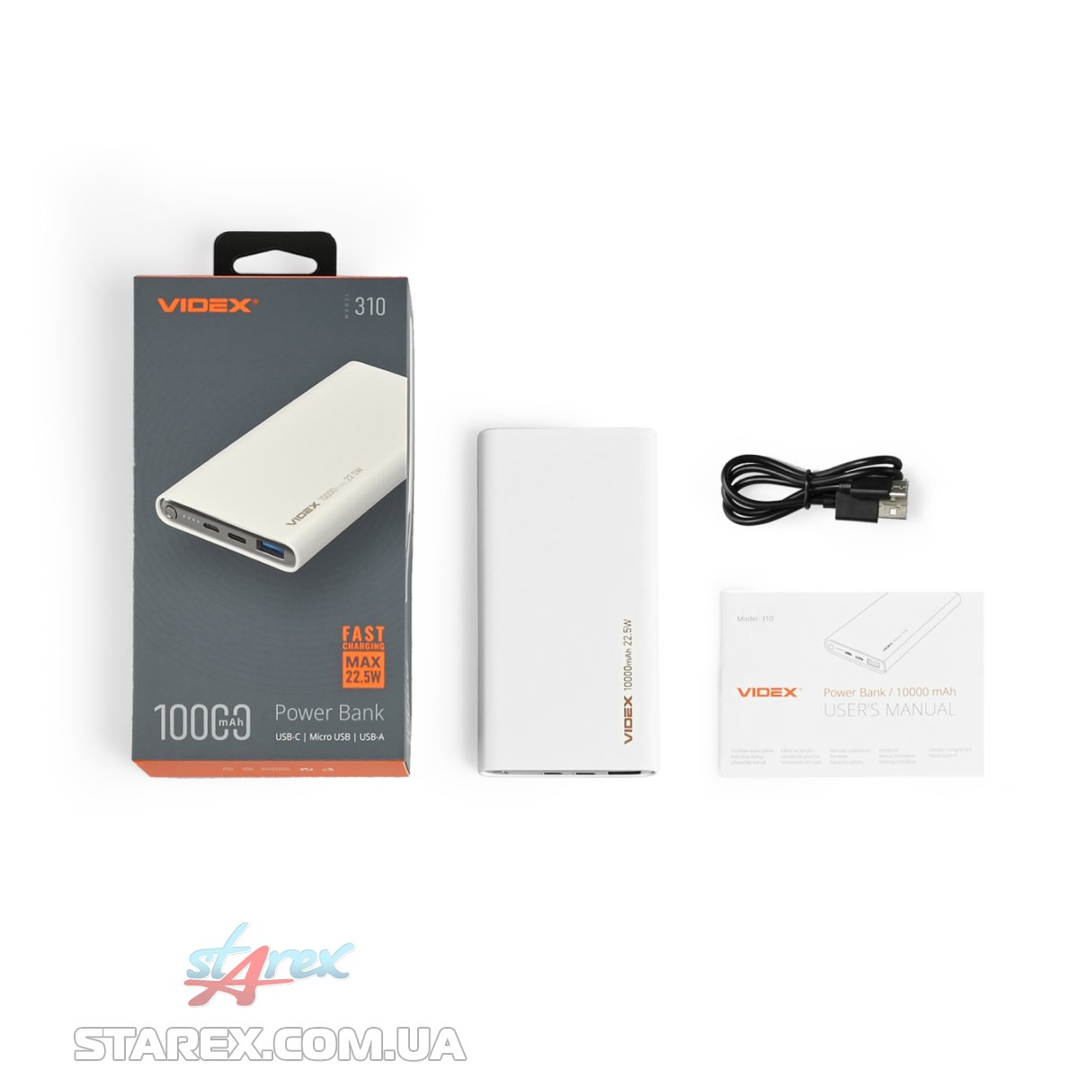 4) Комплектація: повербанк, кабель USB-C, документація.