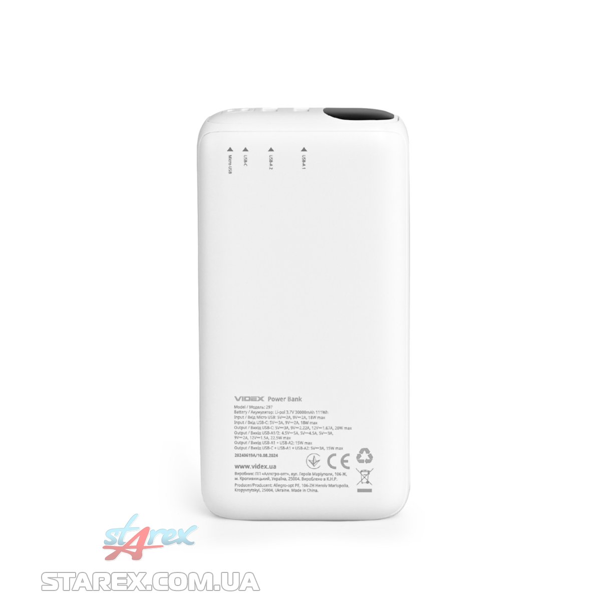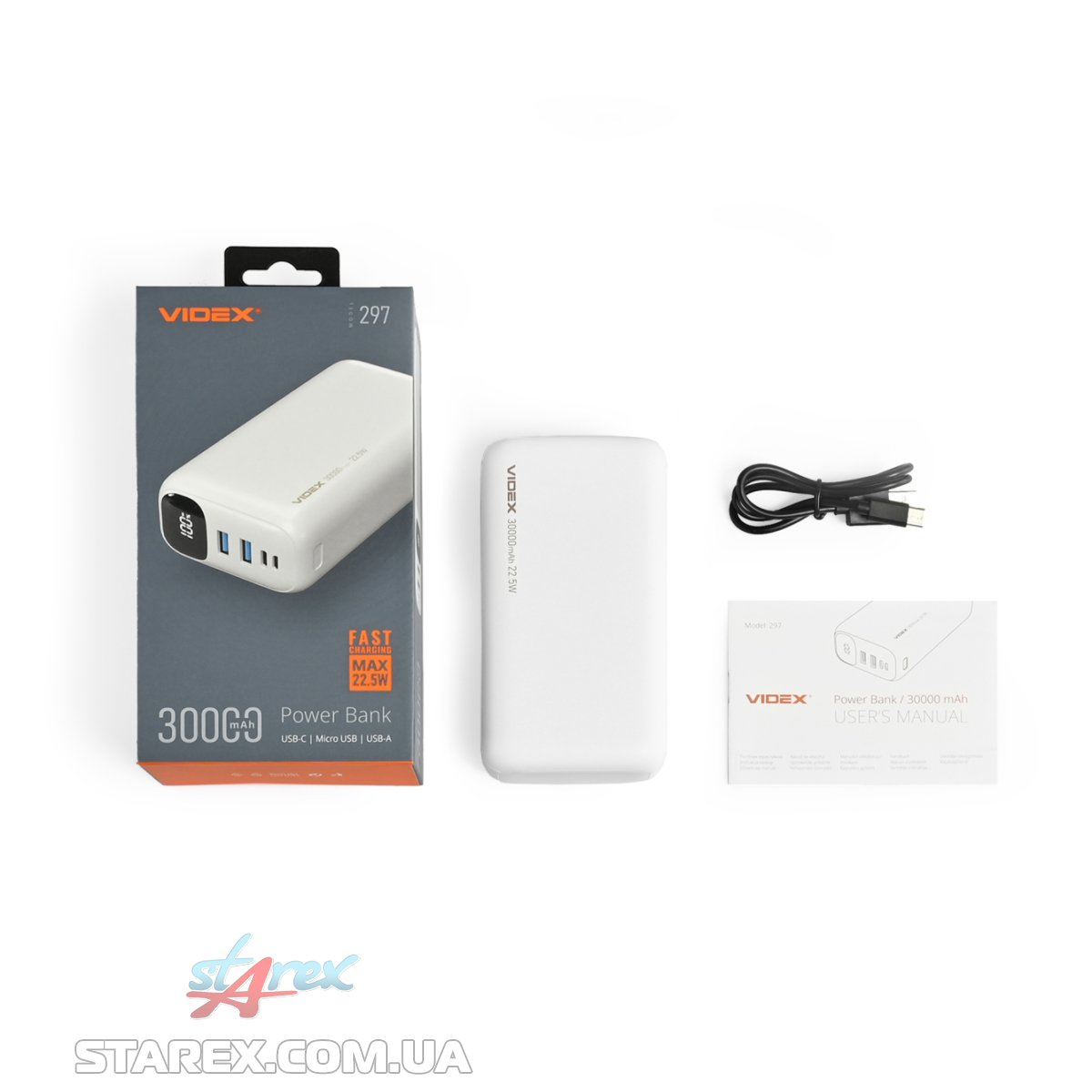 Повербанк 30000mAh VIDEX VPB-297 22.5W White