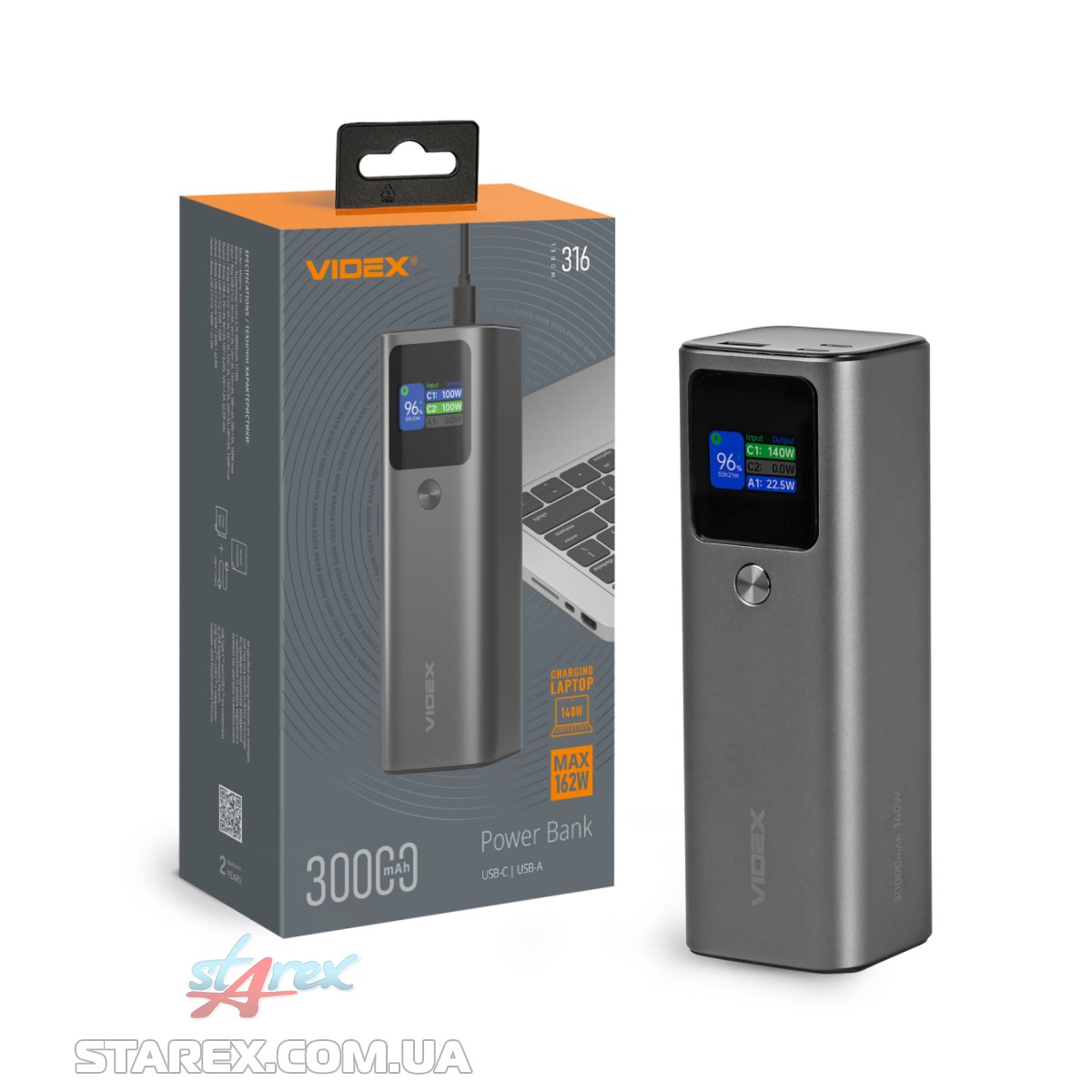 Повербанк 30000mAh VIDEX VPB-316 162W PD140W +Display