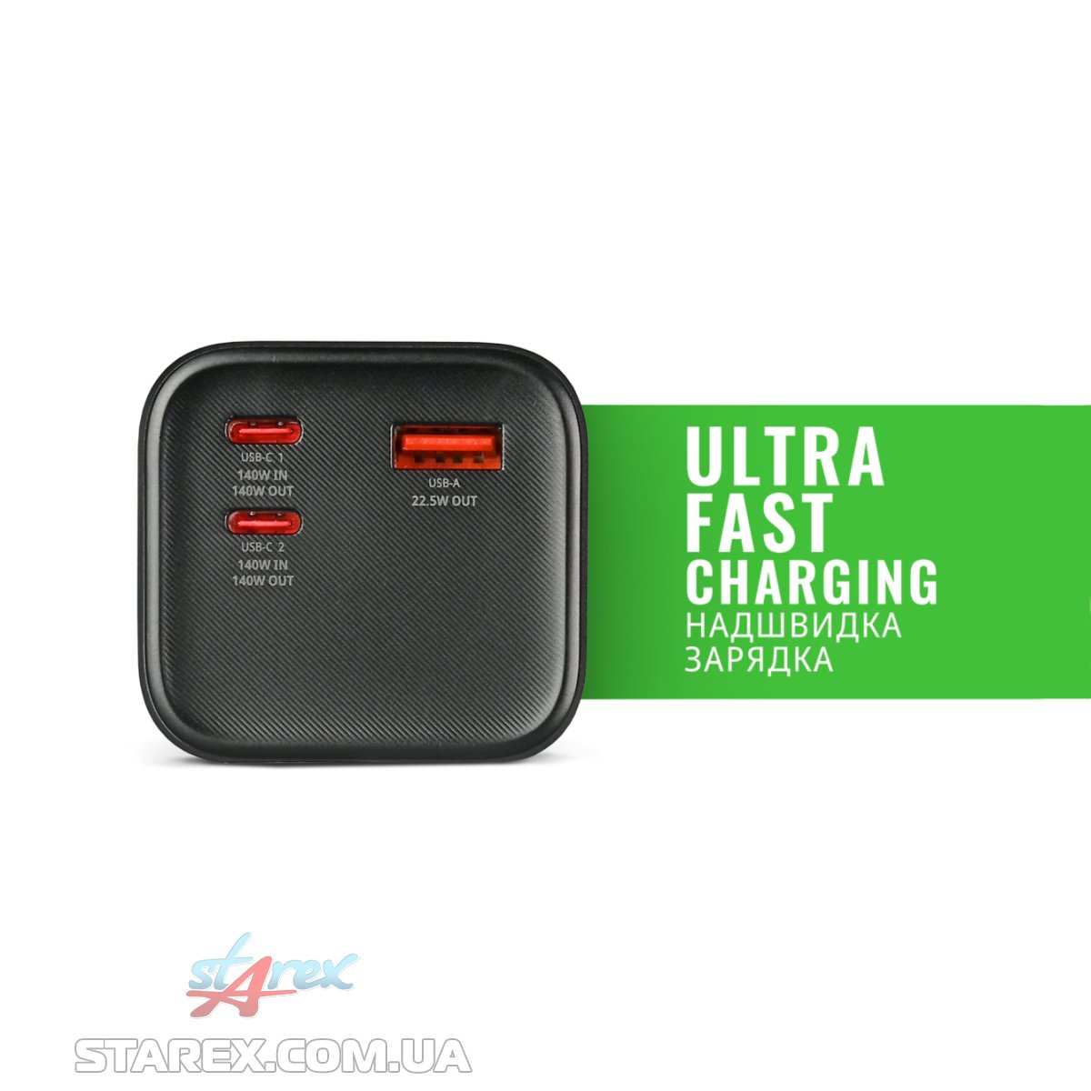 Вихід USB-C1 / USB-C2 + USB-A: 140W + 22.5W