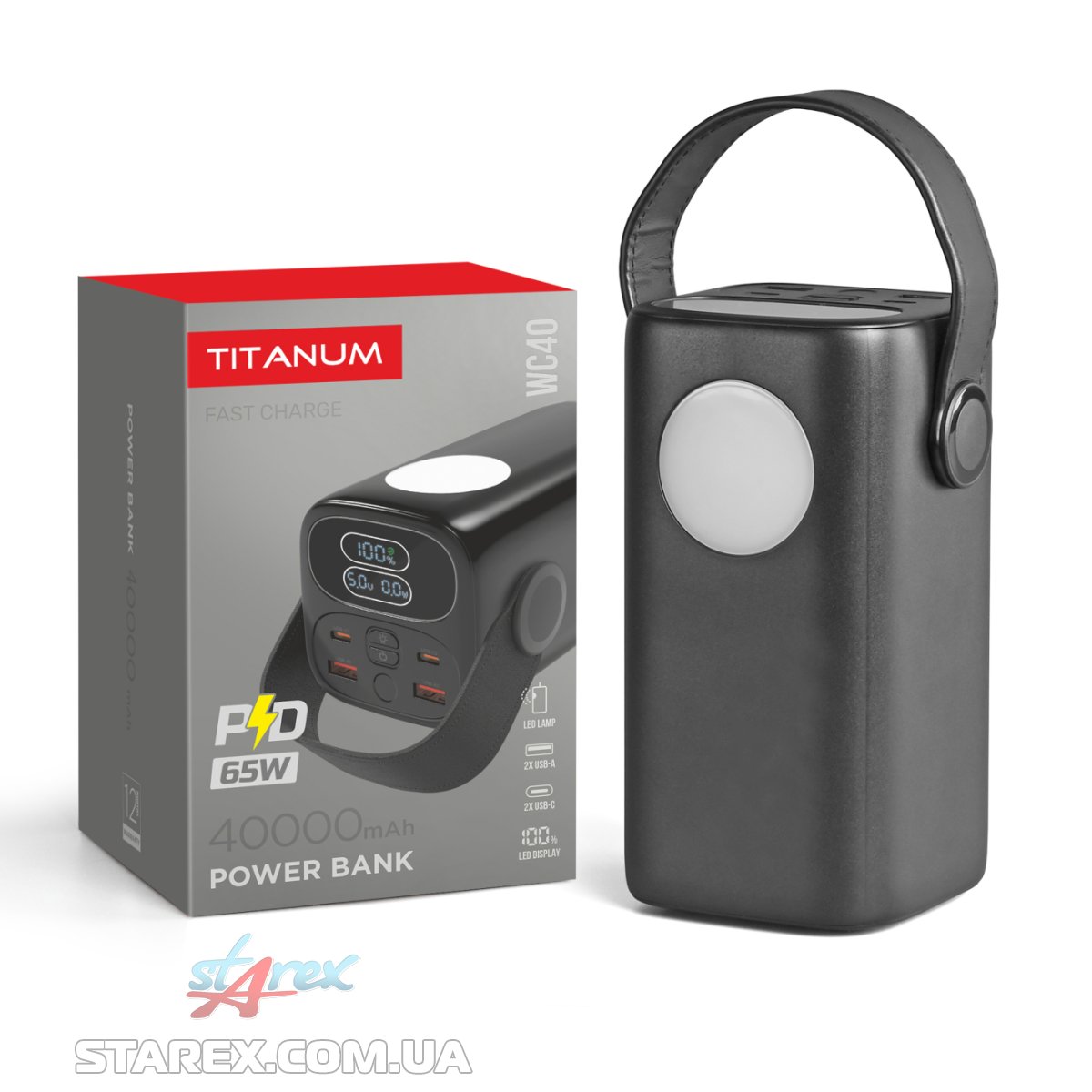Повербанк 40000mAh TITANUM WC40 PD65W Black