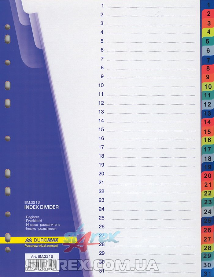 Разделители цветные с разбивкой по цифрах от 1 до 31