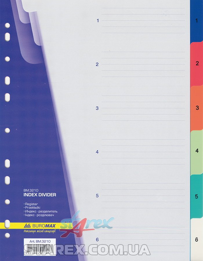 Разделители цветные с разбивкой по цифрах от 1 до 6