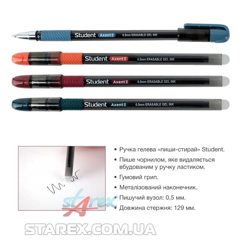 Ручка гелевая "пиши-стирай" Axent Student 0,5мм, черная