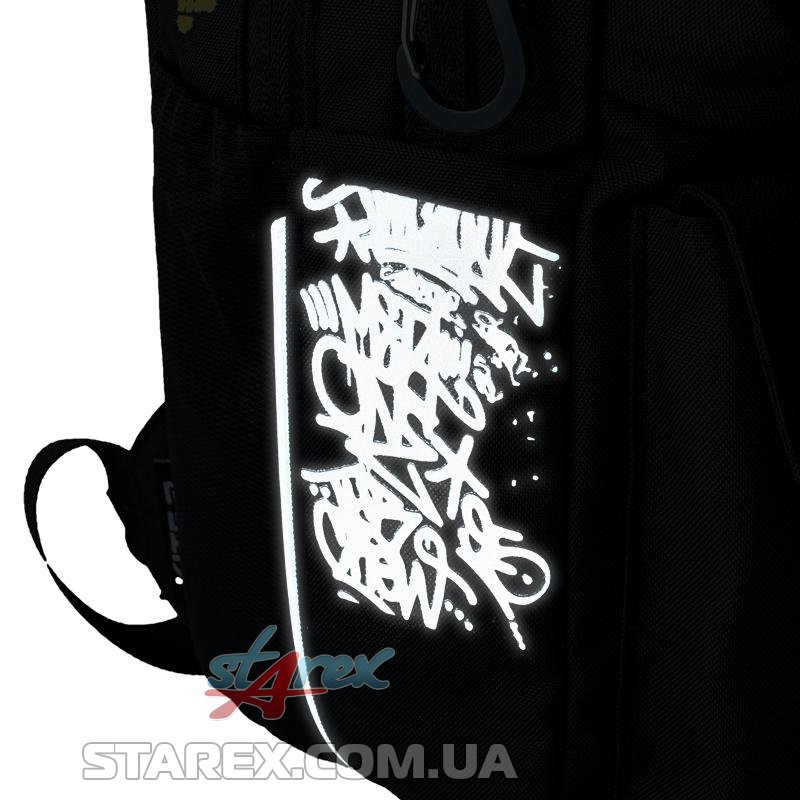 Фішка цього рюкзака — кишеня з липучкою, яка дає можливість легко змінювати дизайн під настрій. Бейджі кріпляться на липучку, і це дозволяє швидко кастомізувати рюкзак у будь-якому стилі.