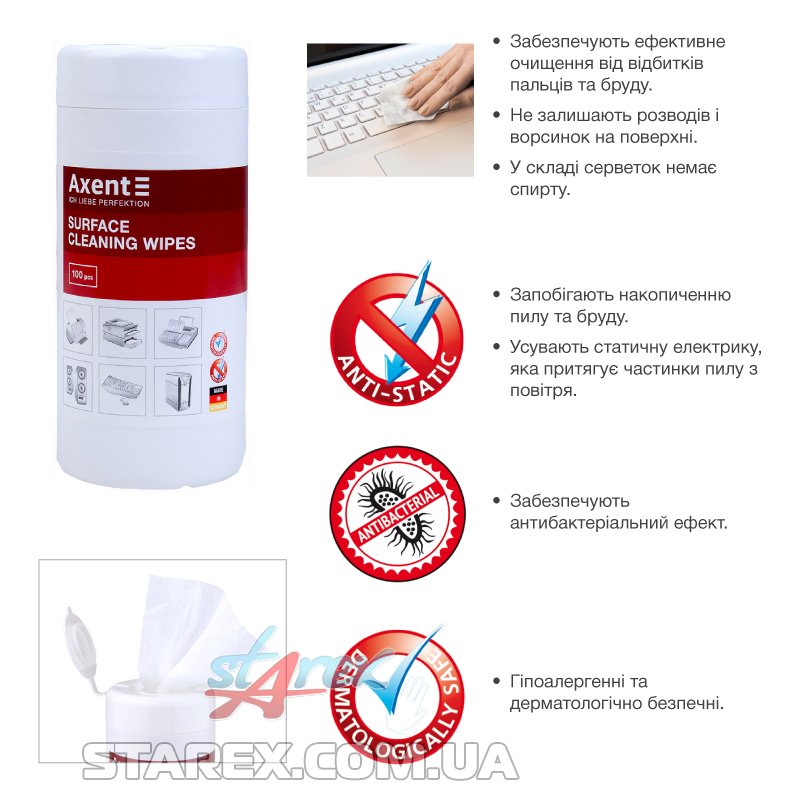 - Салфетки по уходу за оргтехникой, влажные, 100шт