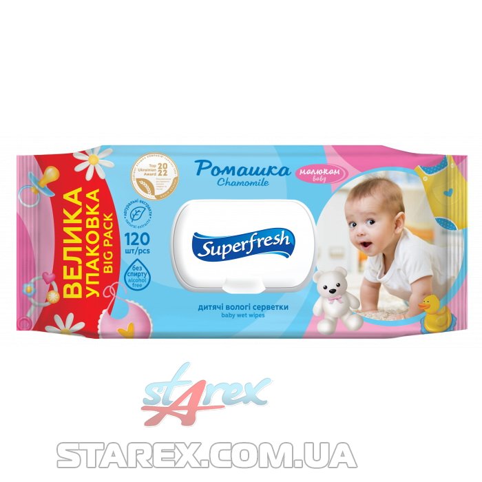 Салфетки влажные Superfresh Baby chamomile с клапаном, 120шт