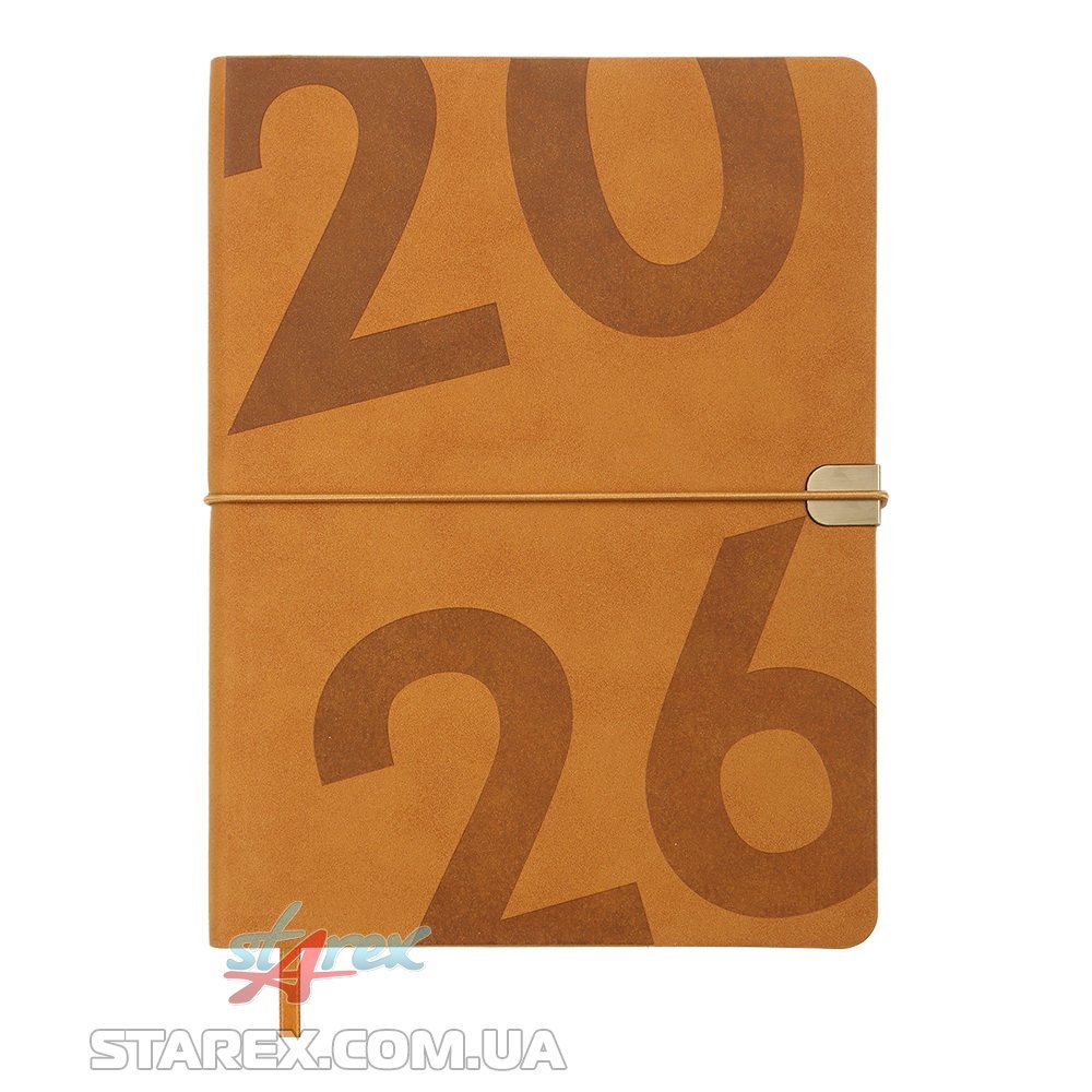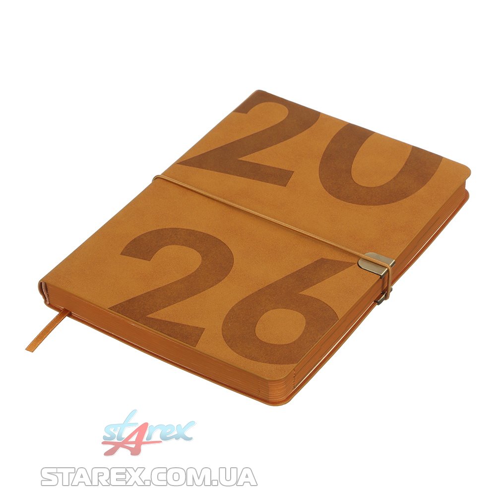 Гибкая обложка ежедневника BEST выполнена из искусственной кожи c бархатистой фактурой типа soft-touch. Уникальной особенностью модели является оригинальное декоративное тиснение года, выполненное по всей лицевой стороне обложки. Поперечная резинка надежно фиксирует ежедневник в закрытом состоянии и поможет сохранить все важные записи и планы. Дизайн гармонично дополняет тонированный срез в цвет обложки и металлические шильды-накладки с углублениями на лицевой и задней части обложки, на которые ложится резинка