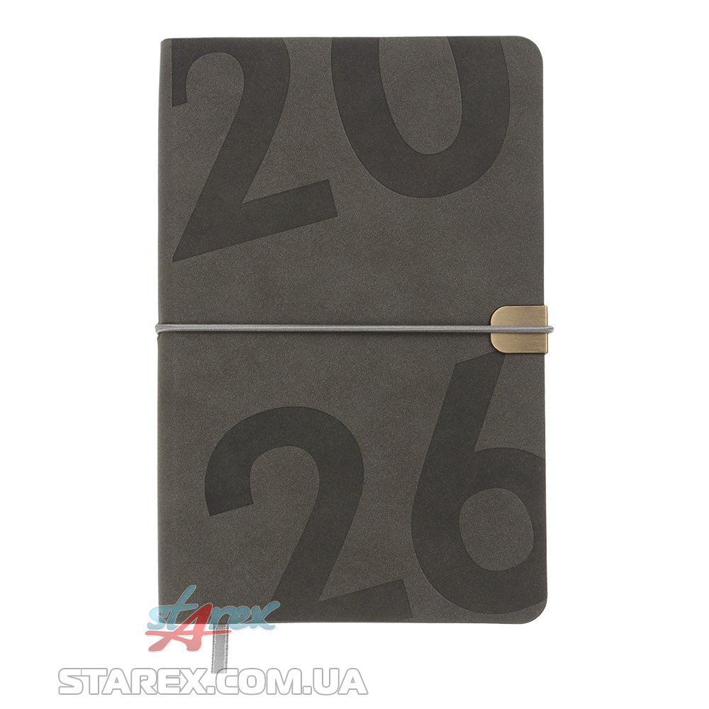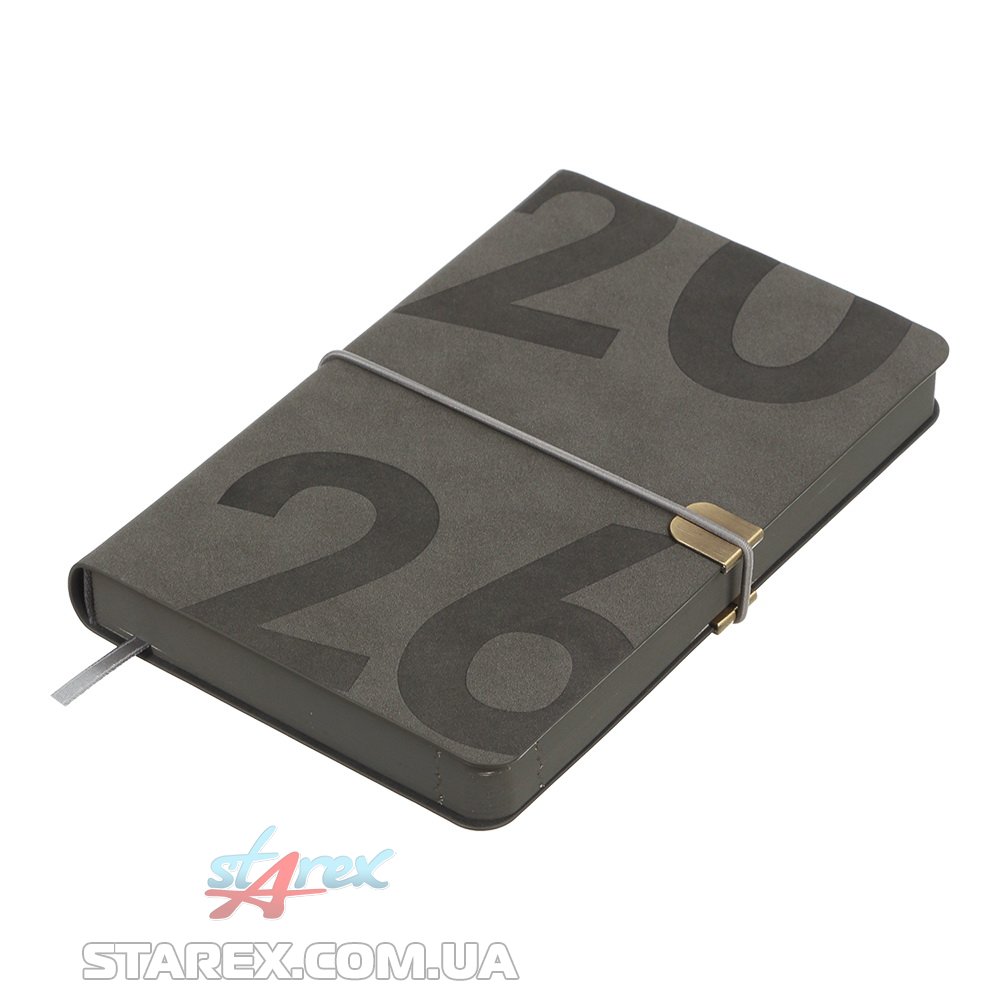 Гибкая обложка ежедневника BEST выполнена из искусственной кожи c бархатистой фактурой типа soft-touch. Уникальной особенностью модели является оригинальное декоративное тиснение года, выполненное по всей лицевой стороне обложки. Поперечная резинка надежно фиксирует ежедневник в закрытом состоянии и поможет сохранить все важные записи и планы. Дизайн гармонично дополняет тонированный срез в цвет обложки и металлические шильды-накладки с углублениями на лицевой и задней части обложки, на которых оригинально и фиксированно ложится резинка
