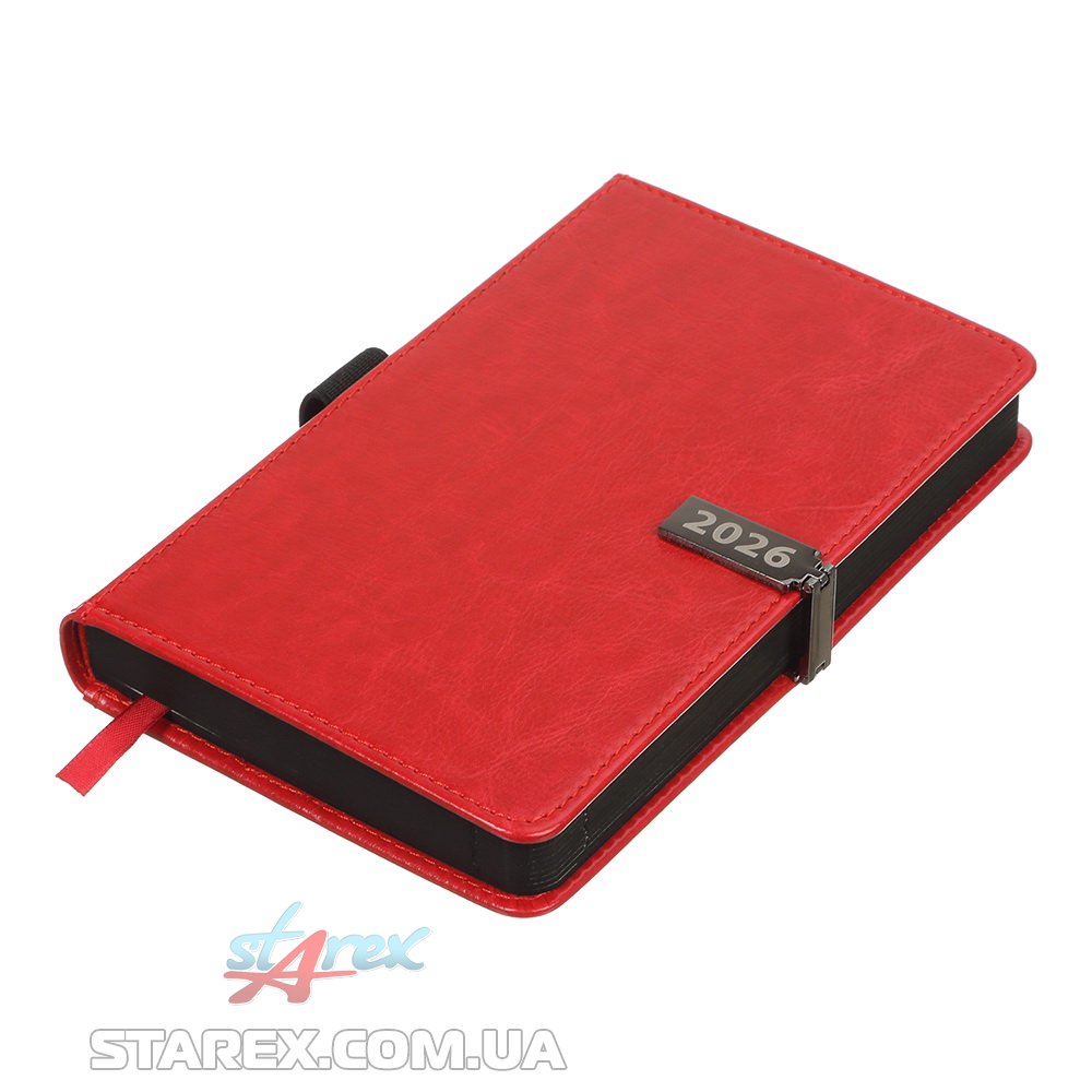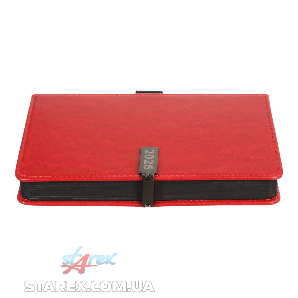 Жесткая обложка из искусственной кожи ежедневника LEGEND имеет слепое тиснение года на лицевой стороне и элегантную металлическую магнитную застежку, которая зафиксирует ежедневник в закрытом положении. По-периметру обложка отделана декоративным швом. Гармонично оттеняет дизайн тонированный в черный цвет срез внутреннего блока