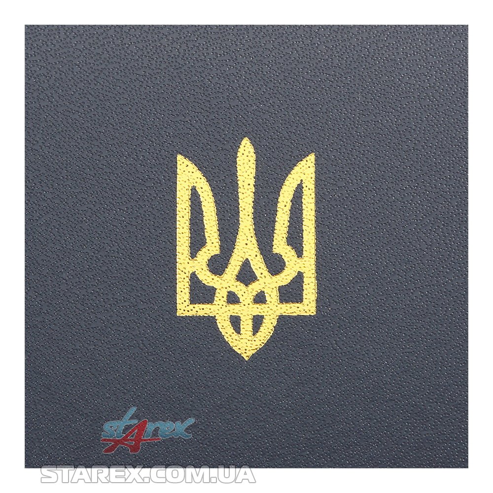 Жесткая обложка из бумвинила с поролоном ежедневника POWERFUL имеет поверхность, визуально имитирующую ткань, выполнена в патриотическом мотивирующем дизайне с яркими акцентами - тиснение Государственного Герба и надписи золотой фольгой. Гармонично дополняет дизайн тонированный золотом срез внутреннего блока с нанесением года