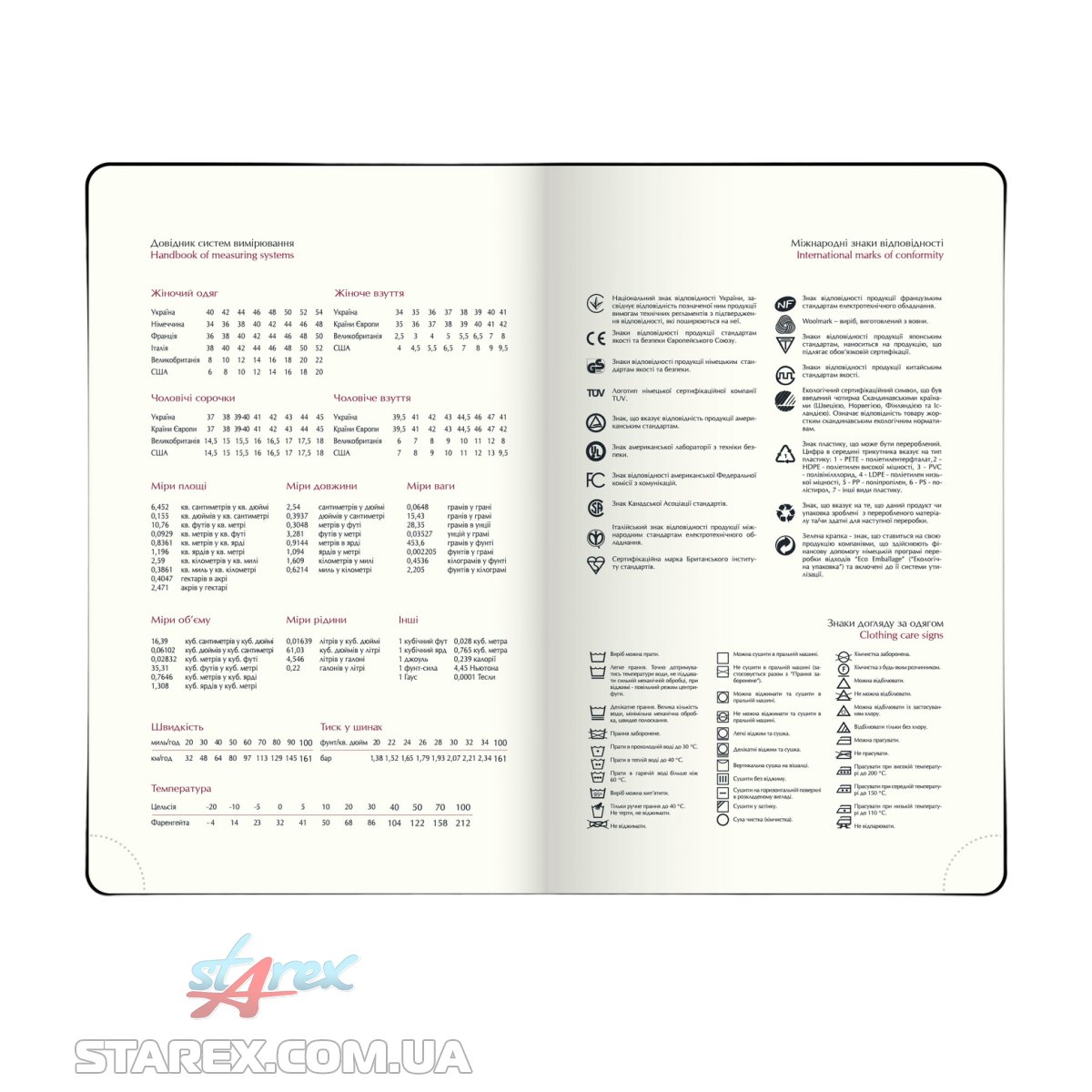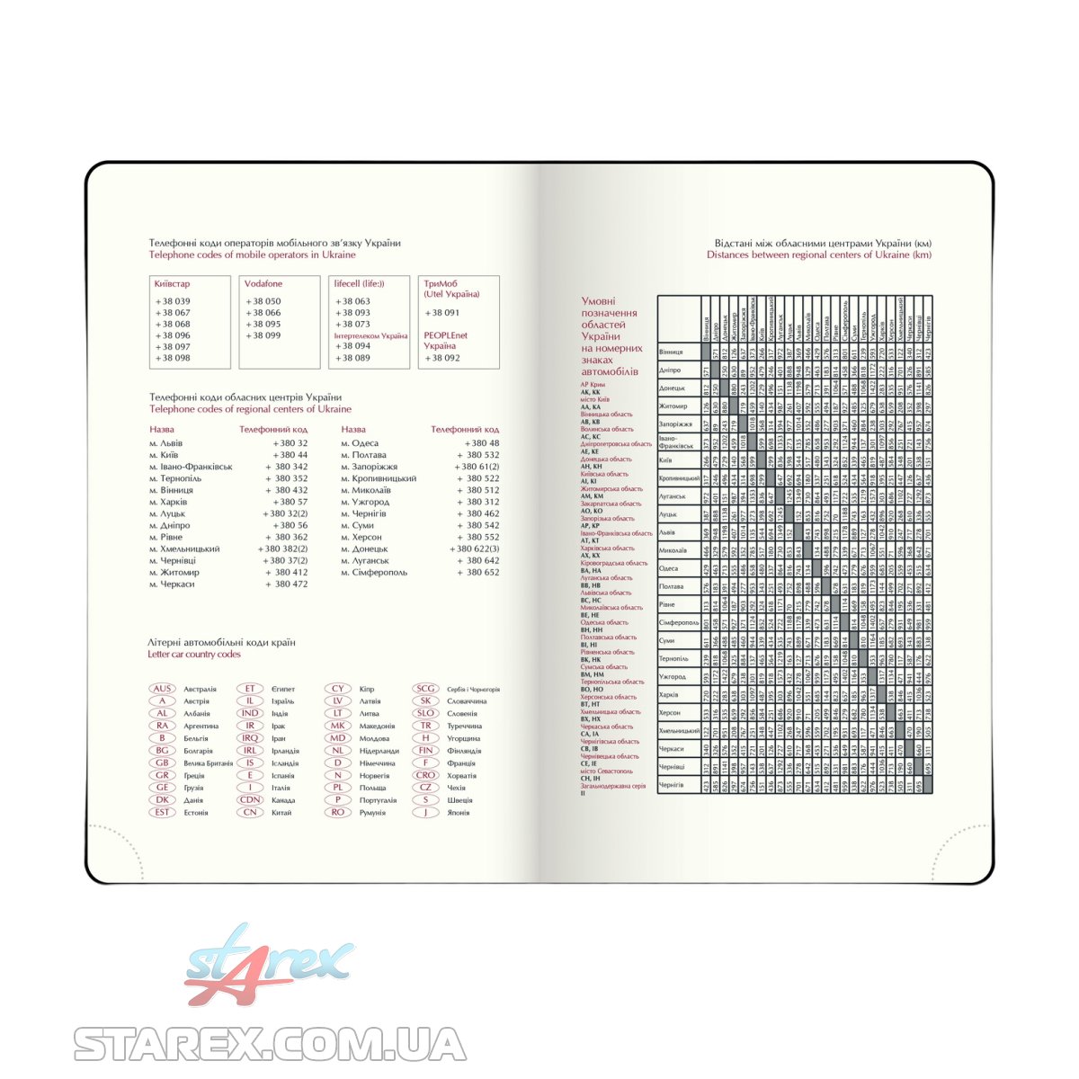 - Информационно справочный блок: национальные, религиозные, профессиональные праздники и памятные даты, знаки зодиака, телефонные коды мобильных операторов и областных центров Украины, буквенные автомобильные коды стран, таблица расстояний между областными центрами Украины, справочник систем измерения, международные знаки соответствия, знаки ухода за одеждой