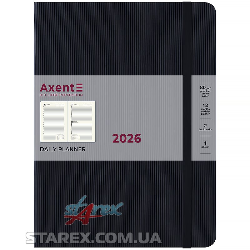 Щоденник 2026 Axent Grand Lines 195x255мм, чорний