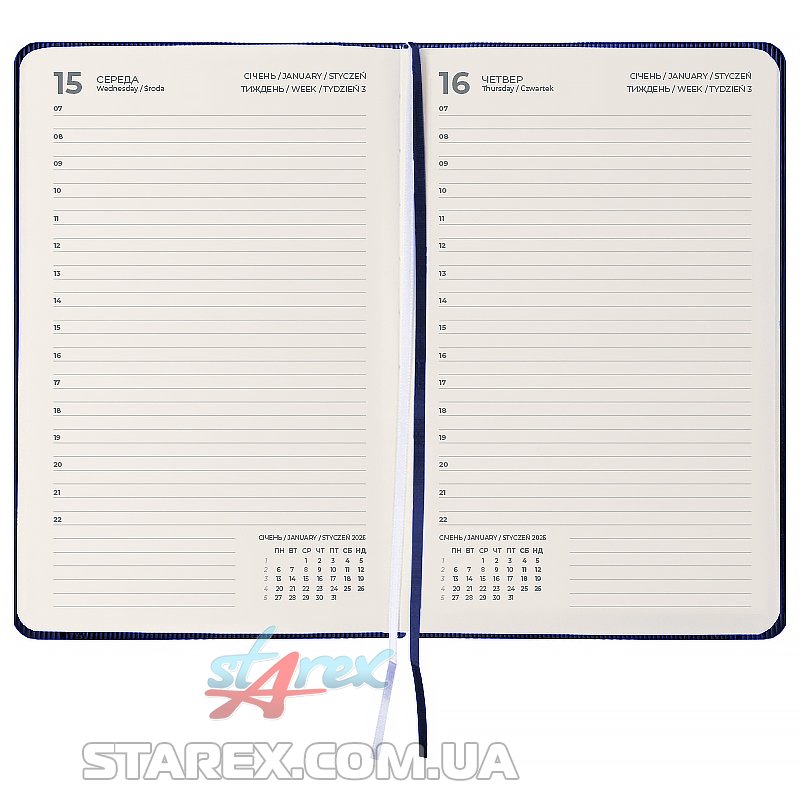 - Щоденник містить календар на 2026-2027 рік, загальний тижневий розклад, інформацію про свята, важливі номери телефонів, часові пояси країн світу, одиниці вимірювання, шкалу температур
