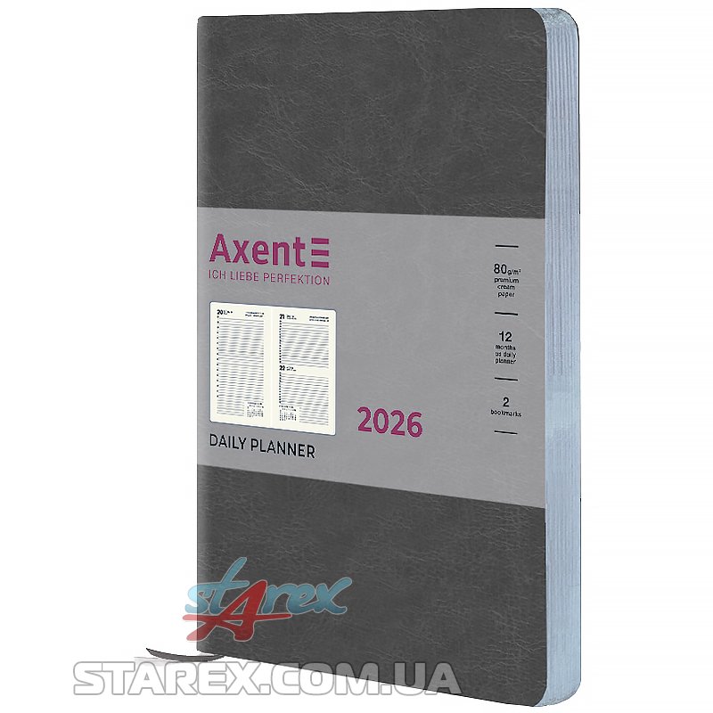 Зручний щоденник Axent із серії Partner City в м'якій обкладинці із срібним зрізом. Використовується для щоденних записів, а також ділових та творчих задач.