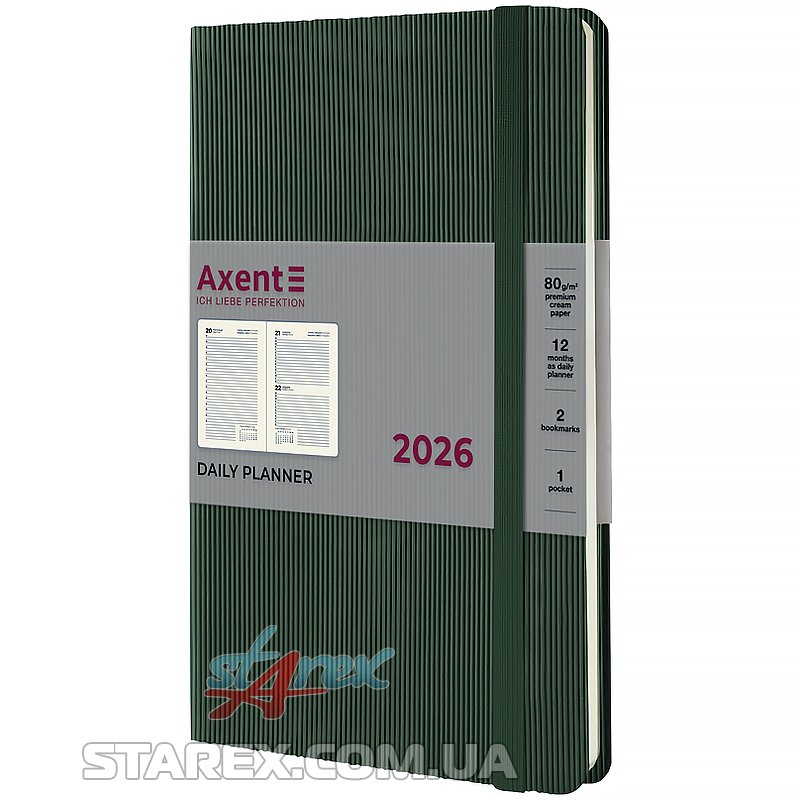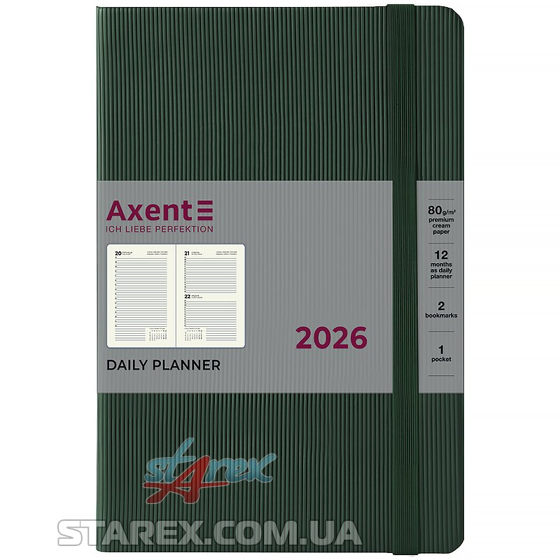 Щоденник 2026 Axent Partner Lines 145x210мм, темно-зелений