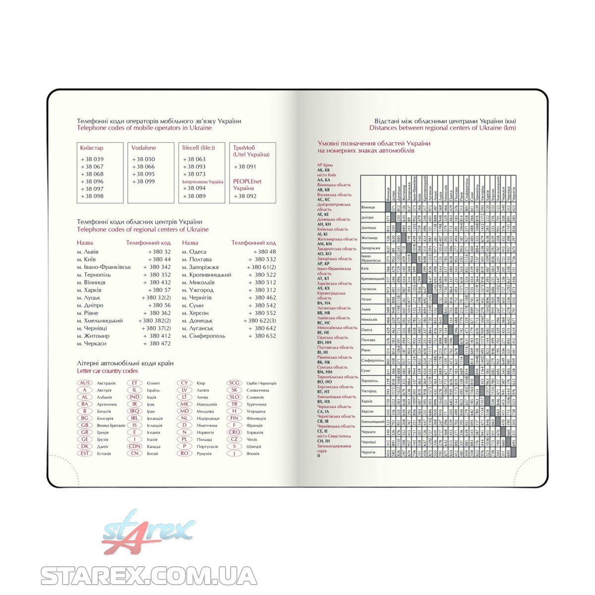 - Информационно-справочный блок: национальные, религиозные, профессиональные праздники и памятные даты, знаки зодиака, телефонные коды мобильных операторов и областных центров Украины, буквенные автомобильные коды стран, таблица расстояний между областными центрами Украины, справочник систем измерения, международные знаки соответствия, знаки ухода за одеждой