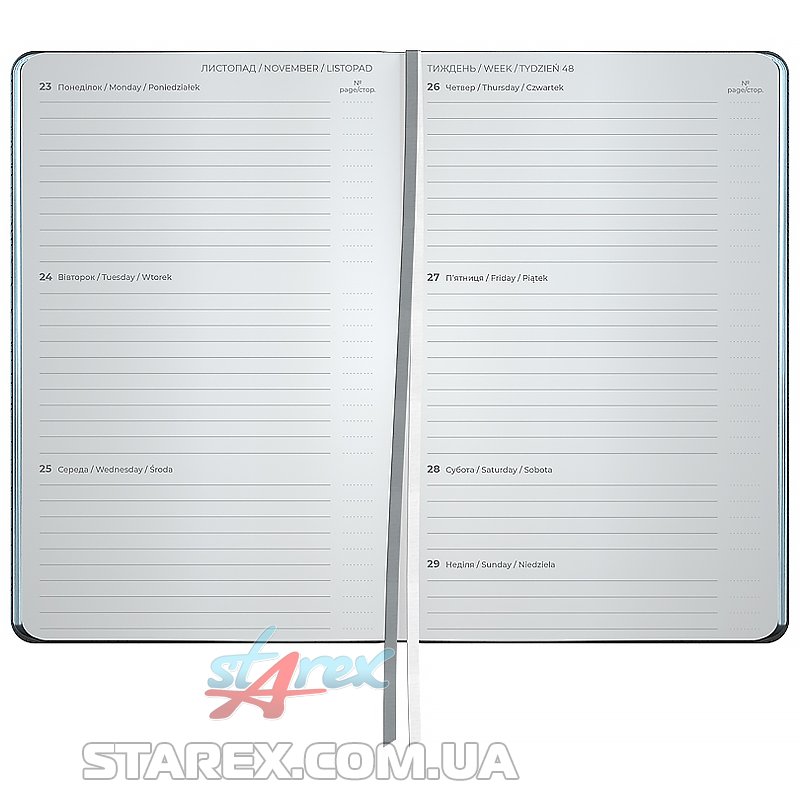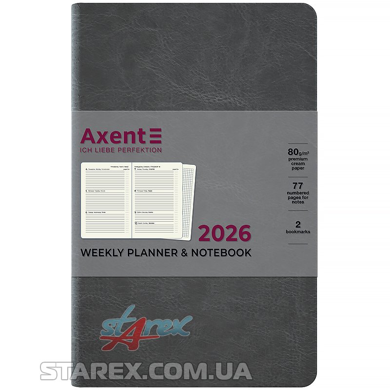 Щотижневик Axent із серії Partner City з м'якою обкладинкою та срібним зрізом. Використовується для щоденних записів, а також ділових та творчих задач.