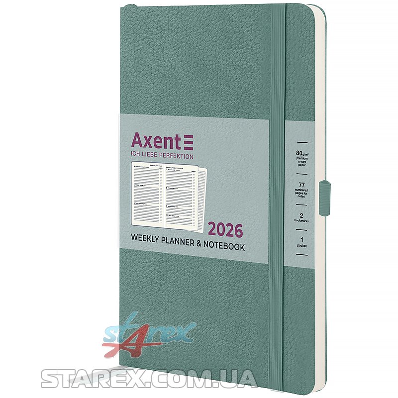 Щотижневик Axent із серії Soft Skin в м'якій, еластичній обкладинці з текстурою під шкіру. Використовується для щоденних записів, а також ділових та творчих задач.