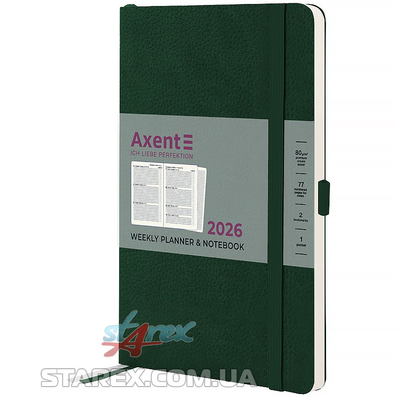 Щотижневик 2026 Axent Partner Soft Skin 125x195мм, темно-зелений