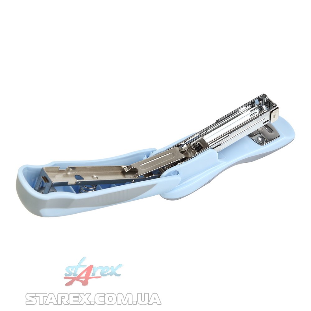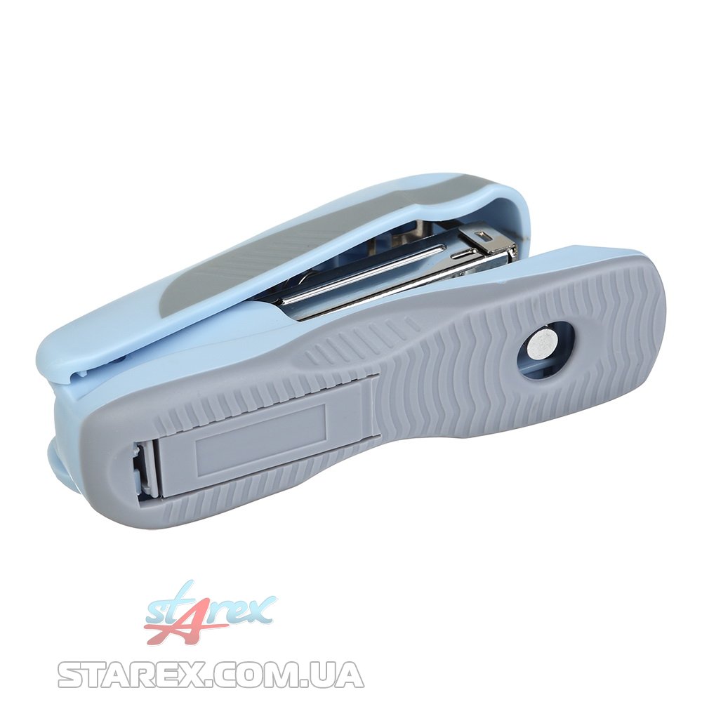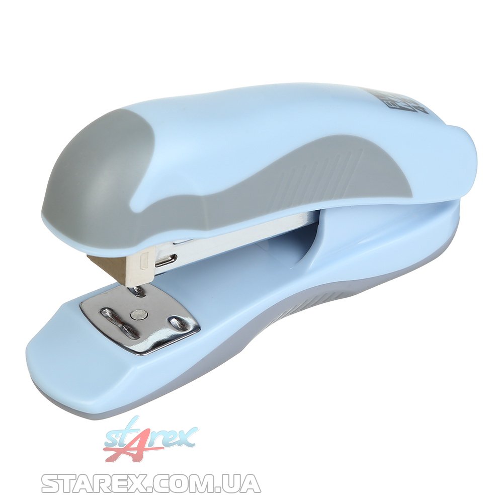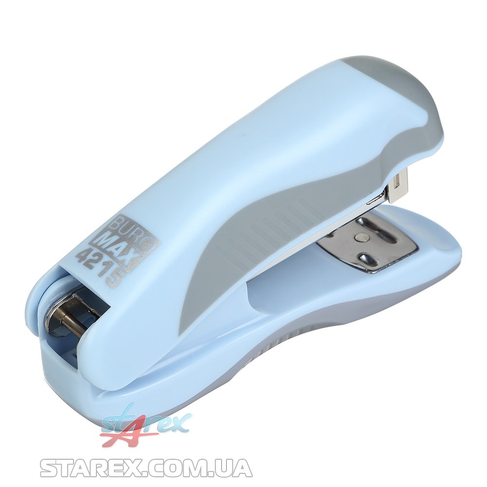 Пластиковый степлер BUROMAX серии PASTEL в сочетании с другими офисными принадлежностями этой серии - придаст изюминку рабочему месту, подчеркнет индивидуальность и станет незаменимым атрибутом при работе с документами. Корпус изготовлен из пластика с прорезиненными вставками благородного серого цвета. Степлер подходит для ежедневного использования как дома, так и в офисе. Данная модель степлера оснащена встроенным отделением для хранения запасных скоб – удобство и экономия времени!