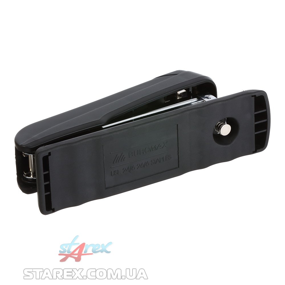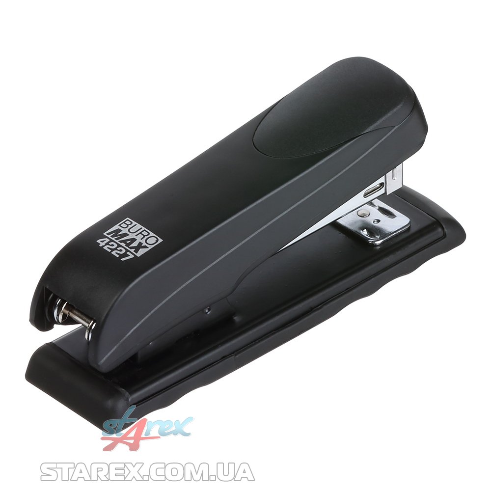 Пластиковый степлер BUROMAX с продуманным эргономичным дизайном подчеркнет индивидуальность и станет незаменимым атрибутом при работе с документами. Скрепляет заявленное количество листов (20л. бумаги 80г/м²) и даже больше. Корпус изготовлен из пластика с дополнительной пластиковой вставкой черного цвета и металлической подошвой. Степлер подходит для ежедневного использования как дома, так и в офисе.