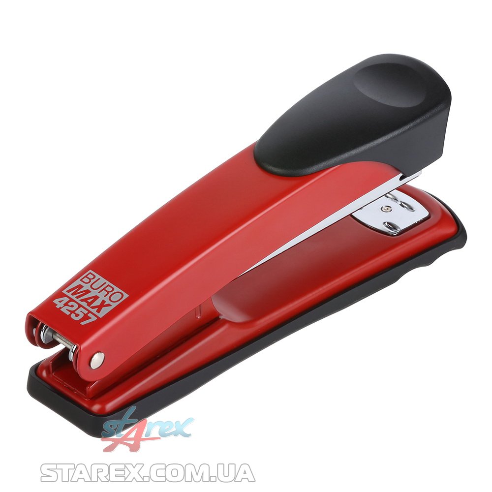 Металлический степлер BUROMAX 4257 подчеркнет индивидуальность и станет незаменимым атрибутом в работе. Скрепляет заявленное количество листов (30л. бумаги 80г/м²) и даже больше. Корпус изготовлен из металла с пластиковой вставкой, которая препятствует скольжению руки, что делает работу с ним комфортной и металлической подошвой. Степлер подходит для ежедневного использования как дома, так и в офисе