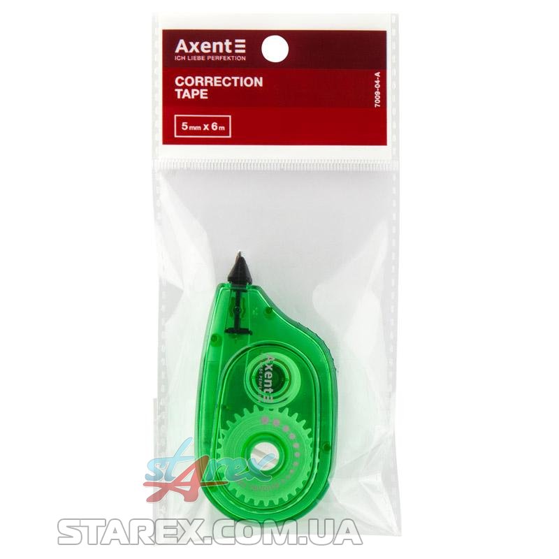 Лента корректирующая Axent отлично подходит для оперативной коррекции строк текста, как печатного, так и рукописного, на всех видах бумаги. Сухой корректирующий слой быстро и без усилий наносится на поверхность ровной непрерывной полосой, легко обрывается. Белизна корректирующего слоя позволяет делать минимально заметные коррекции. Позволяет немедленно производить записи по корректируемому тексту. Корректирующая лента незаметна при копировании или передаче факса. Корпус из прозрачного тонированного пластика зеленого цвета