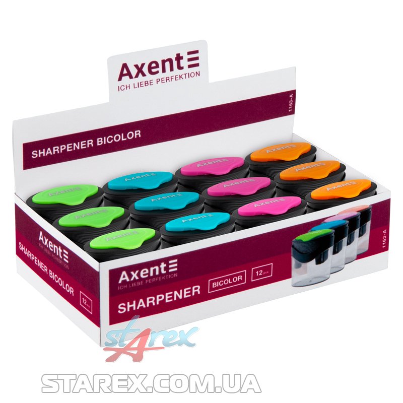 - Пластиковая точилка Axent BiColor с контейнером и двумя лезвиями