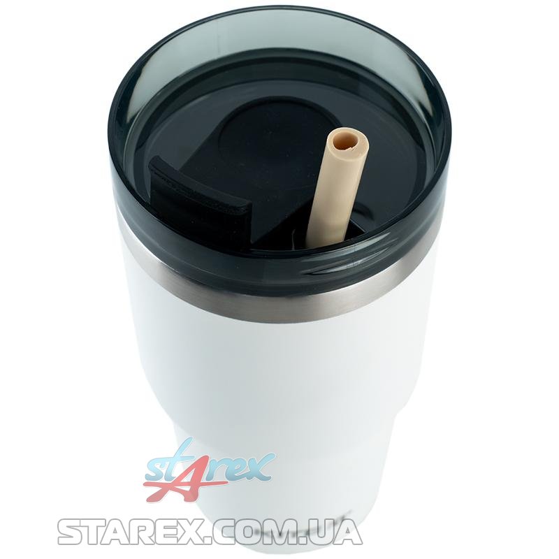 Ця модель має унікальну особливість – має в комплекті розбірну силіконову трубочку, яку зручно мити та просушувати після використання. З кружки можна пити як через отвір, так і через трубочку. Стильна прозора кришка надійно герметично закривається.