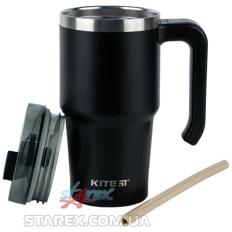 Термокружка з ручкою Kite K24-1207-1, 600 мл, чорна