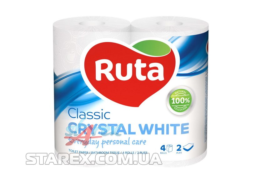 Туалетная бумага RUTA Classic, 4рул/уп, белая