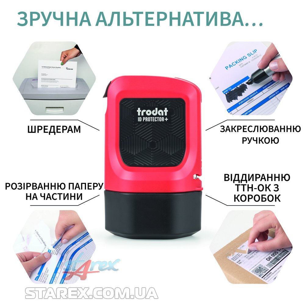 Ежедневно во всем мире совершаются тысячи краж личных данных. Письма, банковские выписки, счета, посылки и многое другое небрежно выбрасываются, большинство из которых содержит данные, которые могут быть использованы для кражи личности или личной информации человека. Вот поэтому компания Trodat создала ID Protector и ID Protector+.