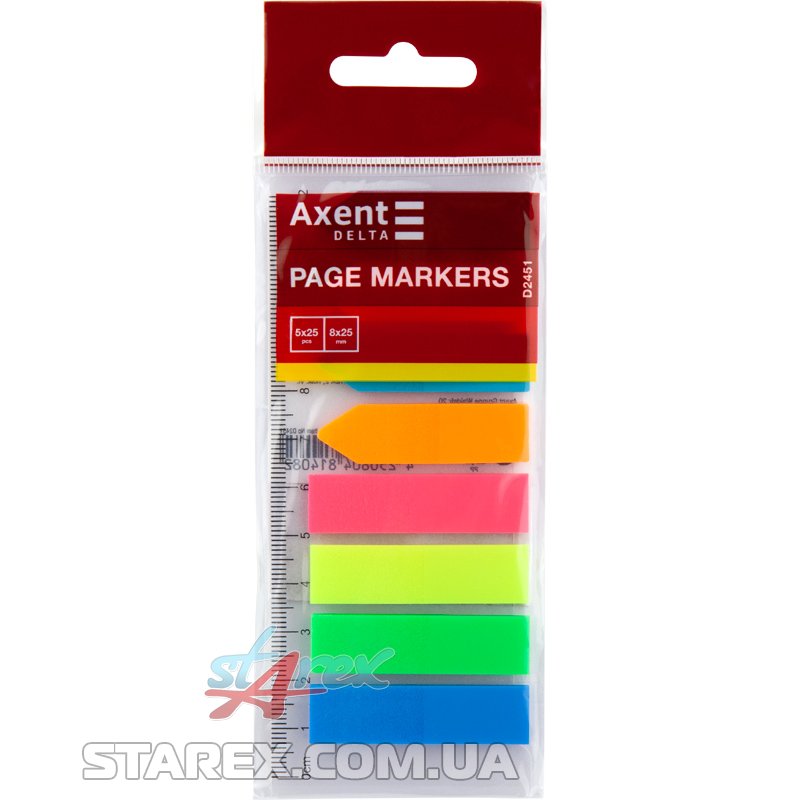Закладки очень удобны для создания пометок в записных книгах, документах, книгах, каталогах и т.д., чтобы при необходимости легко найти нужную страницу или отмеченное место. Преимущество закладок в том, что они легко удаляются с поверхности, не оставляя никаких следов на бумаге. Закладки Delta by Axent имеют прямоугольную форму и форму стрелок (закладки-стрелки удобны в тех случаях, когда необходимо отметить какую-то конкретную строчку в тексте документа, именно на нее и наклеивается "стрелка"), изготовлены из прозрачного пластика ярких неоновых цветов. Благодаря материалу эти закладки пригодны для многоразового использования. На закладках можно наносить пометки. Яркие цвета помогают им не остаться незамеченными в стопке документов