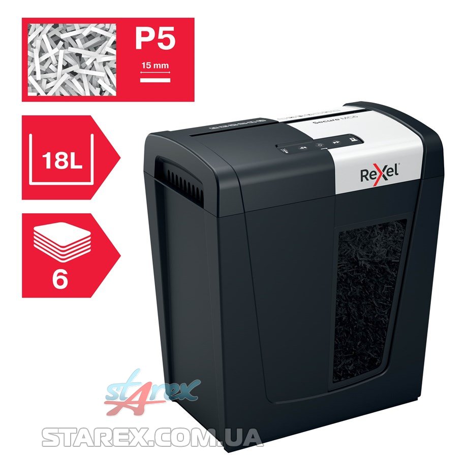 Новая линейка стильных персональных шредеров с микро резкой от компании Rexel. Благодаря компактному размеру он не занимает много места и идеально подходит для использования в небольшом офисе. Легко уничтожает различные документы, даже скрепленные скобами и скрепками. Уничтожает 6 листа формата A4 на фрагменты 2х15мм., разрезая каждый лист на более чем 2000 фрагментов. Эта модель с высоким уровнем секретности P5 и микро-поперечным типом резки. Легко уничтожает различные документы, даже скрепленные скобами и скрепками. Возможность уничтожения скоб и скрепок. Время непрерывной работы до 6 минут - оптимально для периодического уничтожения документов. Режущая часть легко снимается для очистки корзины. Корзина объемом 18 л. - вмещает до 175 измельченных листов, прежде чем ее необходимо будет опорожнить