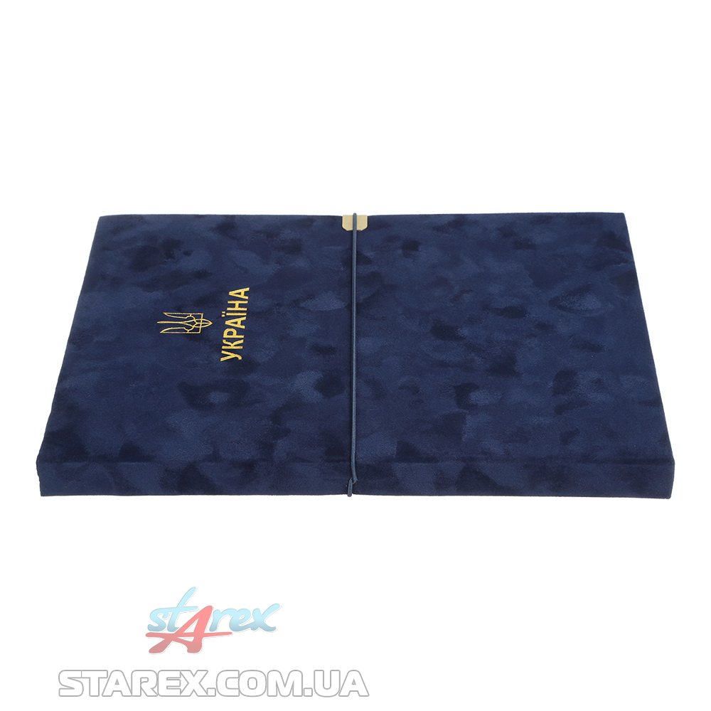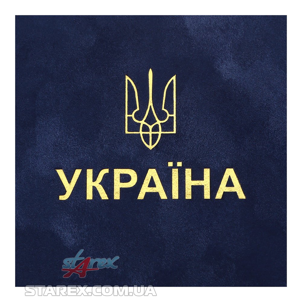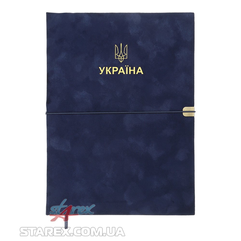 Гнучка обкладинка зі штучної шкіри з інтенсивним оксамитовим покриттям щоденника PATRIOT VELOUR виконана у розкішному стилі з національною символікою - оздоблена тисненням Тризуба та напису УКРАЇНА золотою фольгою. Дві функціональні шильди на лицьовій та зворотній стороні обкладинки з поглибленнями для поперечної гумки забезпечують зручну та надійну фіксацію щоденника в закритому стані. Гармонійно доповнює та збагачує дизайн щоденника тонований золотом зріз внутрішнього блоку з нанесенням року