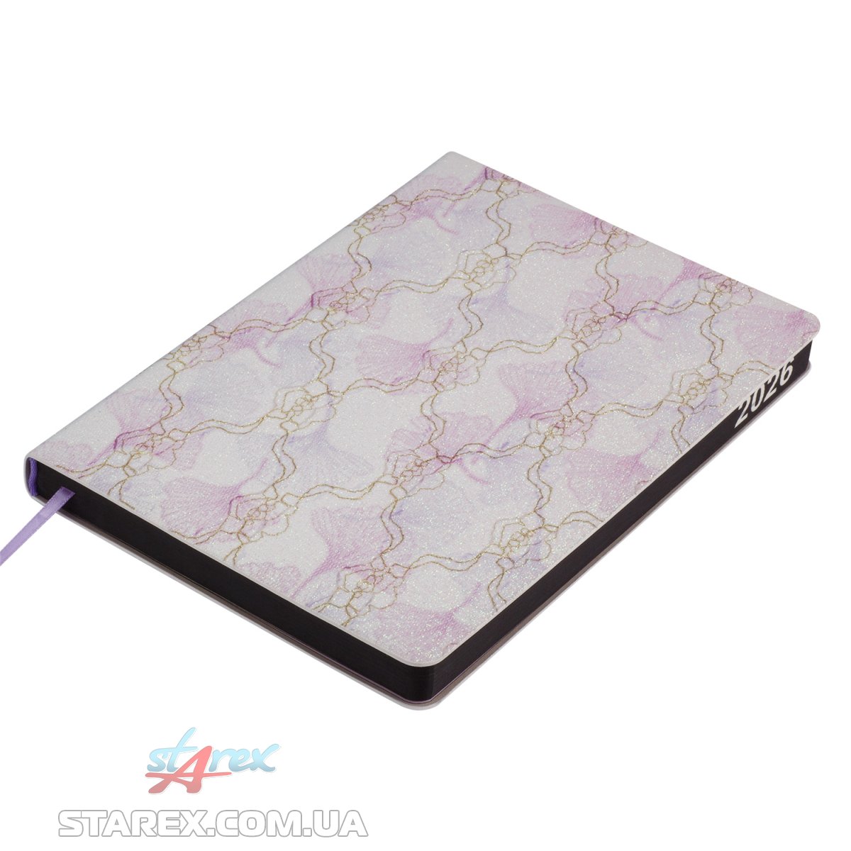 Гнучка обкладинка зі штучної шкіри щоденника BLOOM має стильний та привабливий дизайнерський візерунок та фактурну поверхню з блискітками. Гармонійно доповнює дизайн тонований в чорний колір зріз внутрішнього блоку та нанесення року на ньому