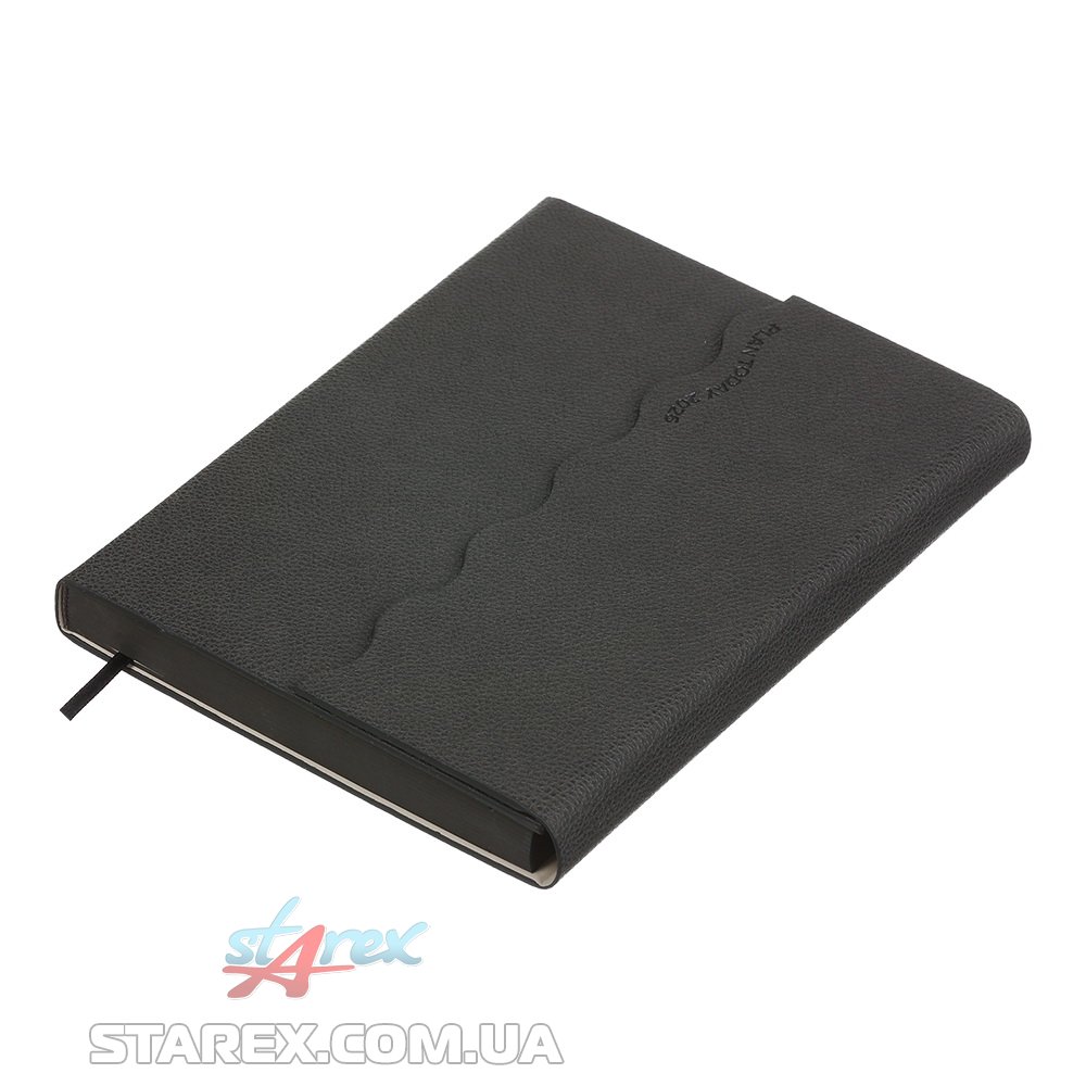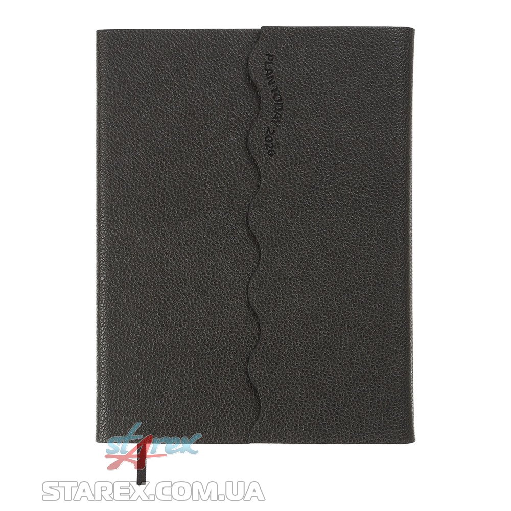Жорстка обкладинка з фактурної штучної шкіри щоденника CHARME виконана в форматі портмоне - має глибокий клапан з оригінальним хвилеподібним краєм, який застібається на лицьовій стороні на магнітну застібку. Гармонійно доповнює дизайн елегантне сліпе тиснення та тонований в колір обкладинки зріз внутрішнього блоку