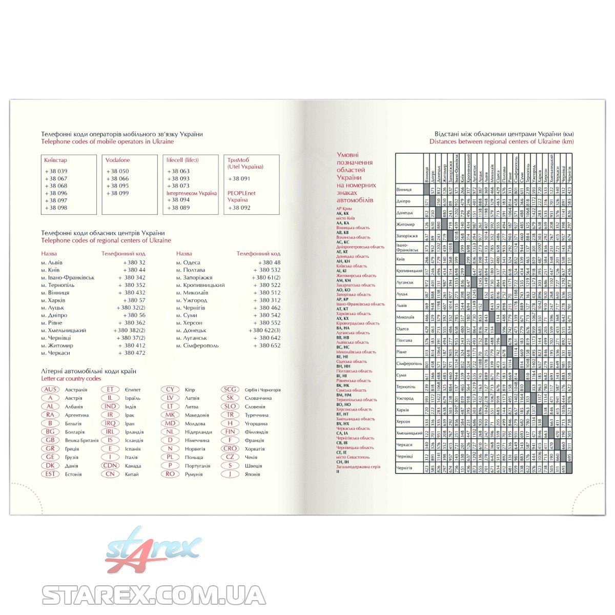 - Інформаційно-довідковий блок: національні, релігійні, професійні свята та пам'ятні дати, знаки зодіаку, телефонні коди мобільних операторів та обласних центрів України, літерні автомобільні коди країн, таблиця відстаней між обласними центрами України, довідник систем вимірювання, міжнародні знаки відповідності, знаки догляду за одягом