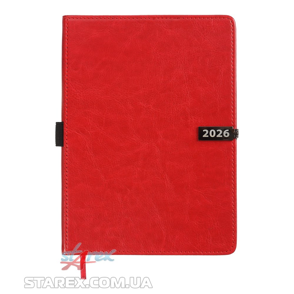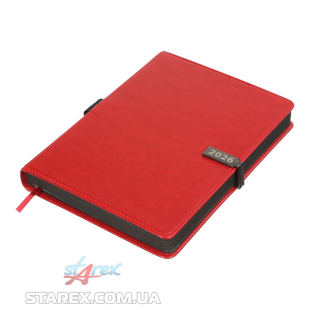 Обкладинка зі штучної шкіри щоденника LEGEND має сліпе тиснення року на лицьовій стороні та елегантну металеву магнітну застібку, яка зафіксує щоденник у закритому положенні. По-периметру обкладинка оброблена декоративним швом. Гармонійно відтіняє тонований у чорний колір зріз внутрішнього блоку.