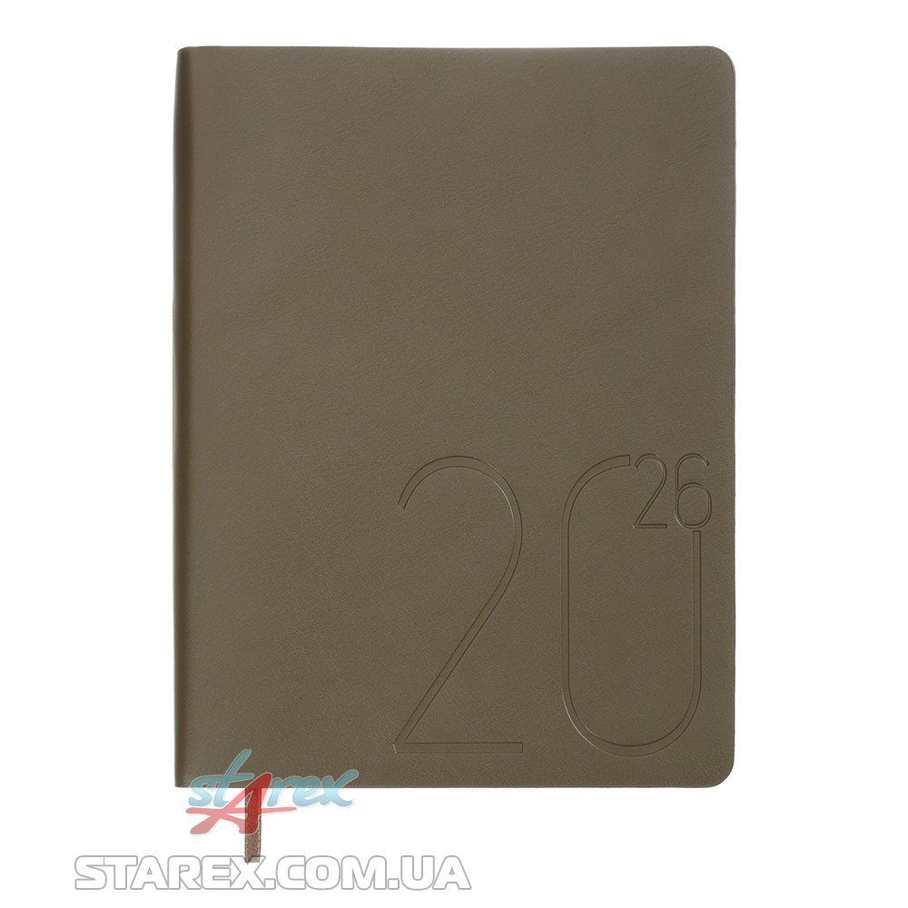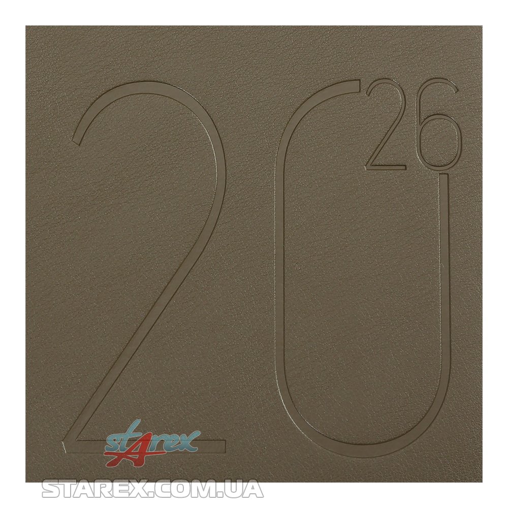 Гнучка обкладинка зі штучної шкіри щоденника DARK MORANDI виконана з приємного на дотик матеріалу в насиченому кольорі модної палітри "моранді" та має оригінальне сліпе тиснення року на лицьовій стороні. Гармонійно доповнює дизайн тонований в колір обладинки зріз внутрішнього блоку