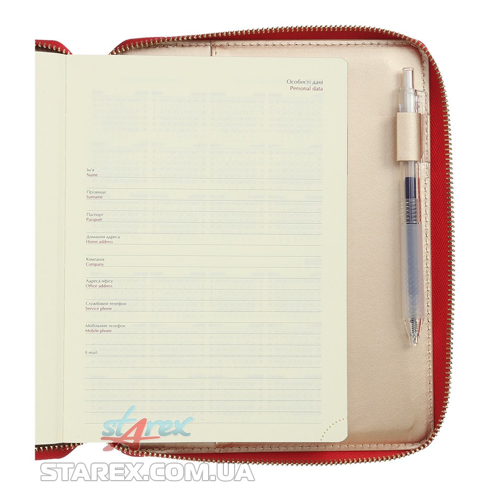 - Датована сторінка на кожен день року з організатором часу від 7:00 до 21:00, календарем на поточний/наступний місяць, позначенням дня тижня, знаку зодіаку, іменинників