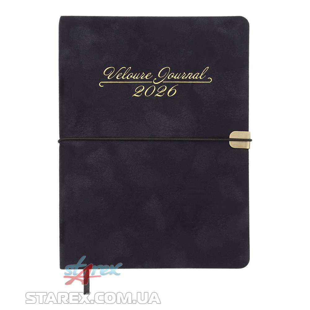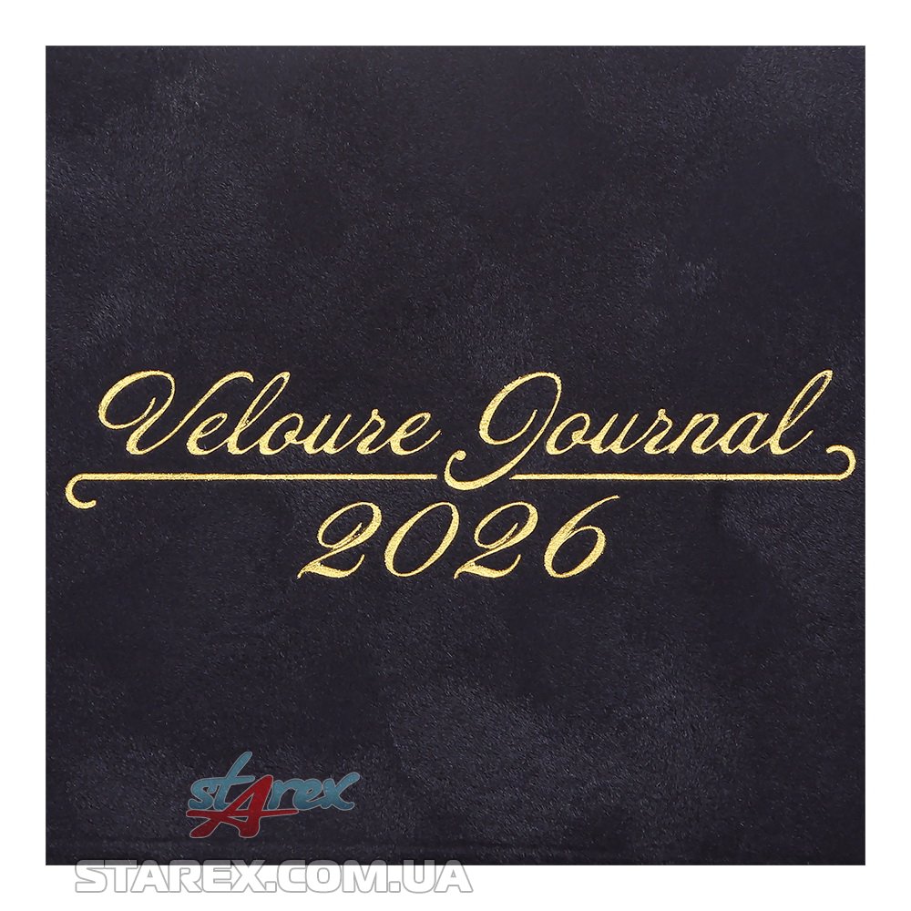 Гнучка обкладинка щоденника VELOUR виконана з штучної шкіри з виразним оксамитовим покриттям. Дві функціональні шильди на лицьовій та зворотній стороні обкладинки з поглибленнями для поперечної гумки забезпечують зручну та надійну фіксацію щоденника в закритому стані. Дизайн гармонійно доповнює та збагачує тонований золотим кольором зріз внутрішнього блоку та тиснення золотою фольгою року і напису на лицьовій стороні обкладинки
