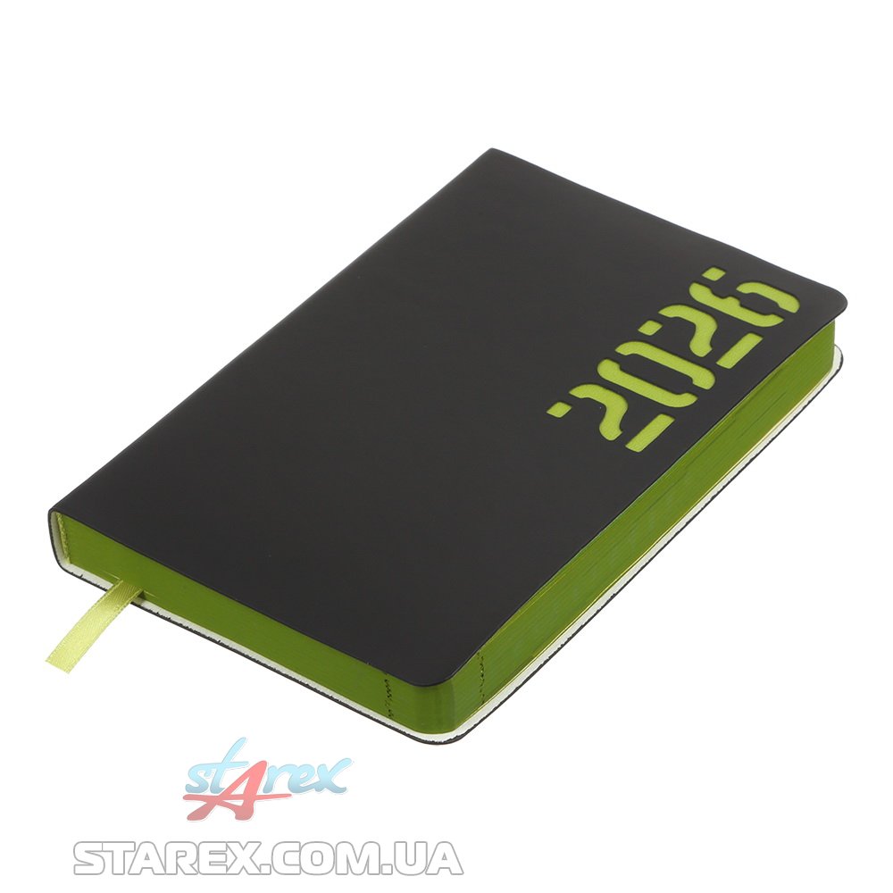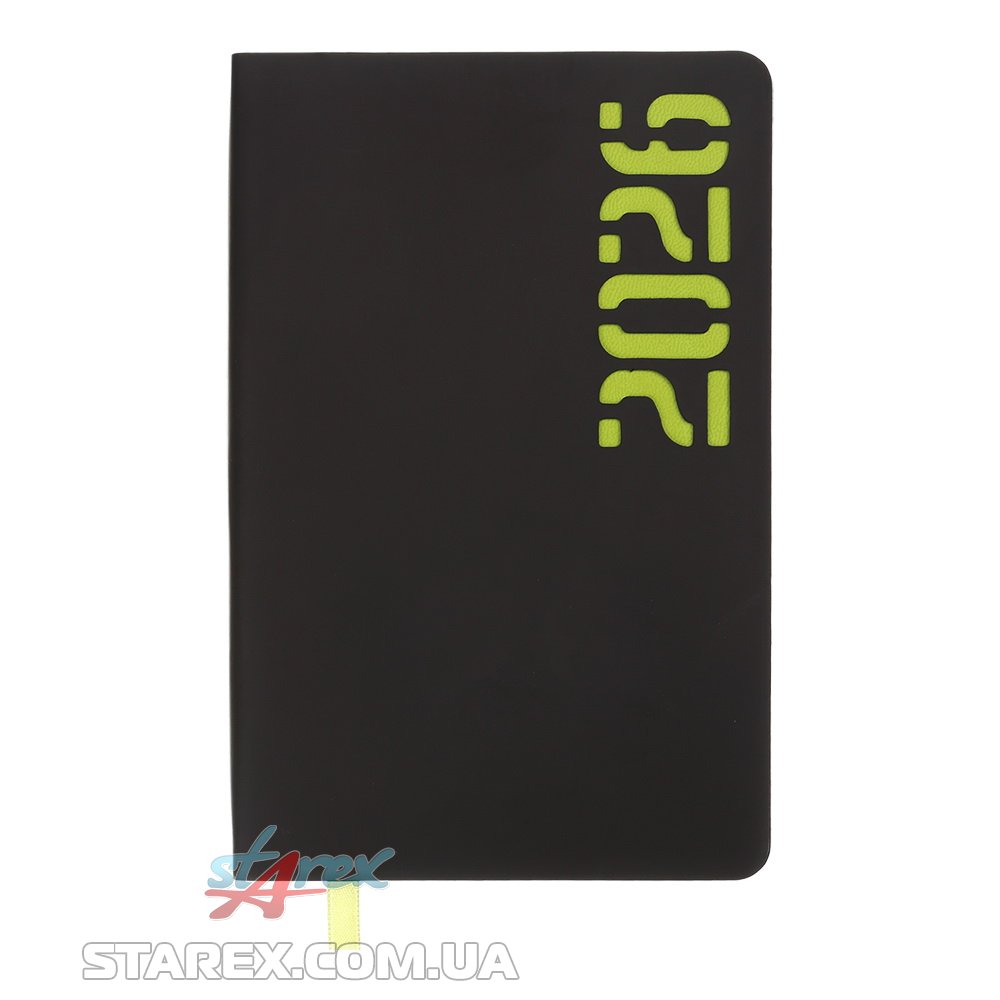 Гнучка обкладинка зі штучної шкіри щоденника NEON виконана з гладкого матеріалу та має яскраве контрастне неонового кольору нанесення року на лицьовій стороні з ефектом вирізання зі шкіри. Гармонійно доповнює дизайн неоновий, тонований в колір надпису, зріз внутрішнього блоку