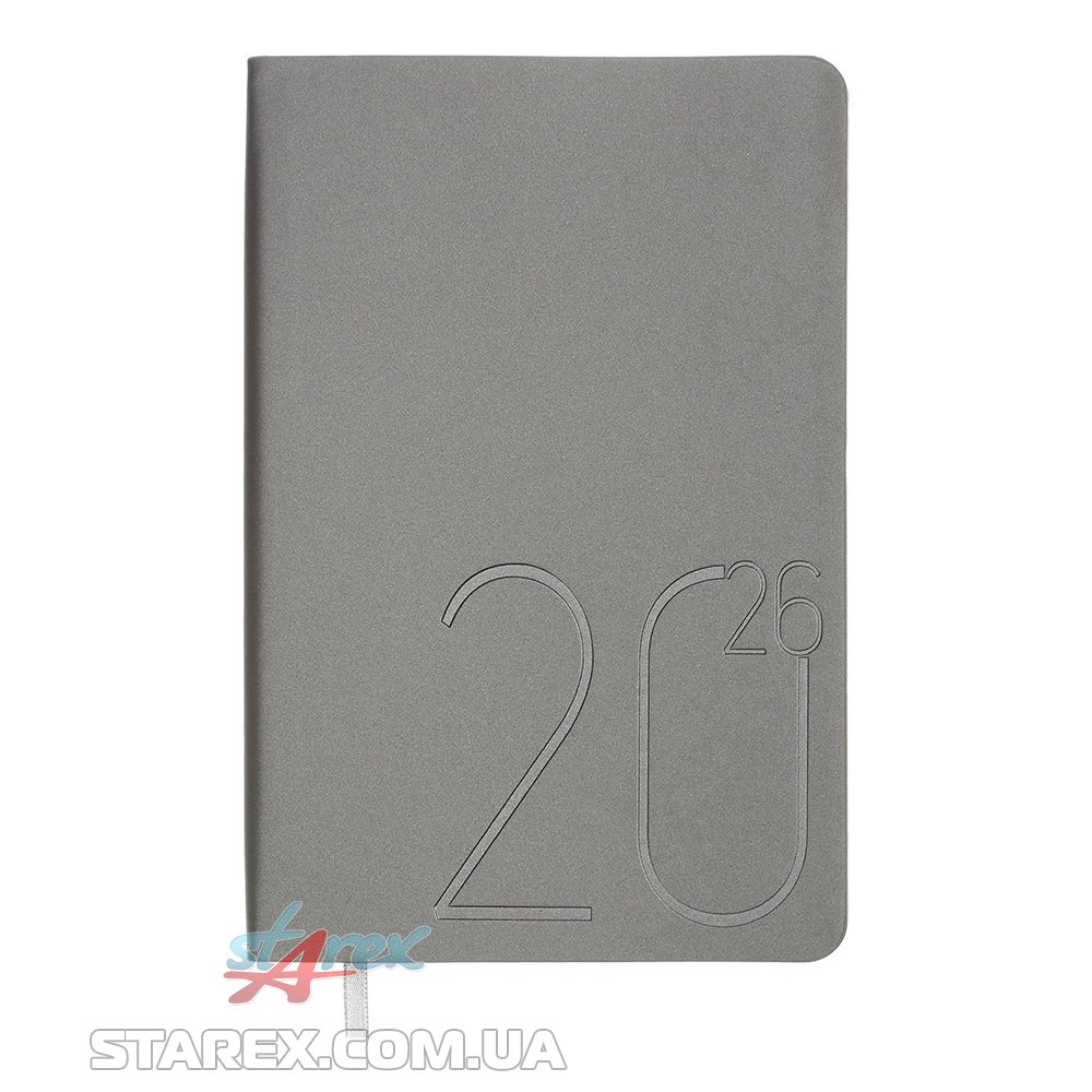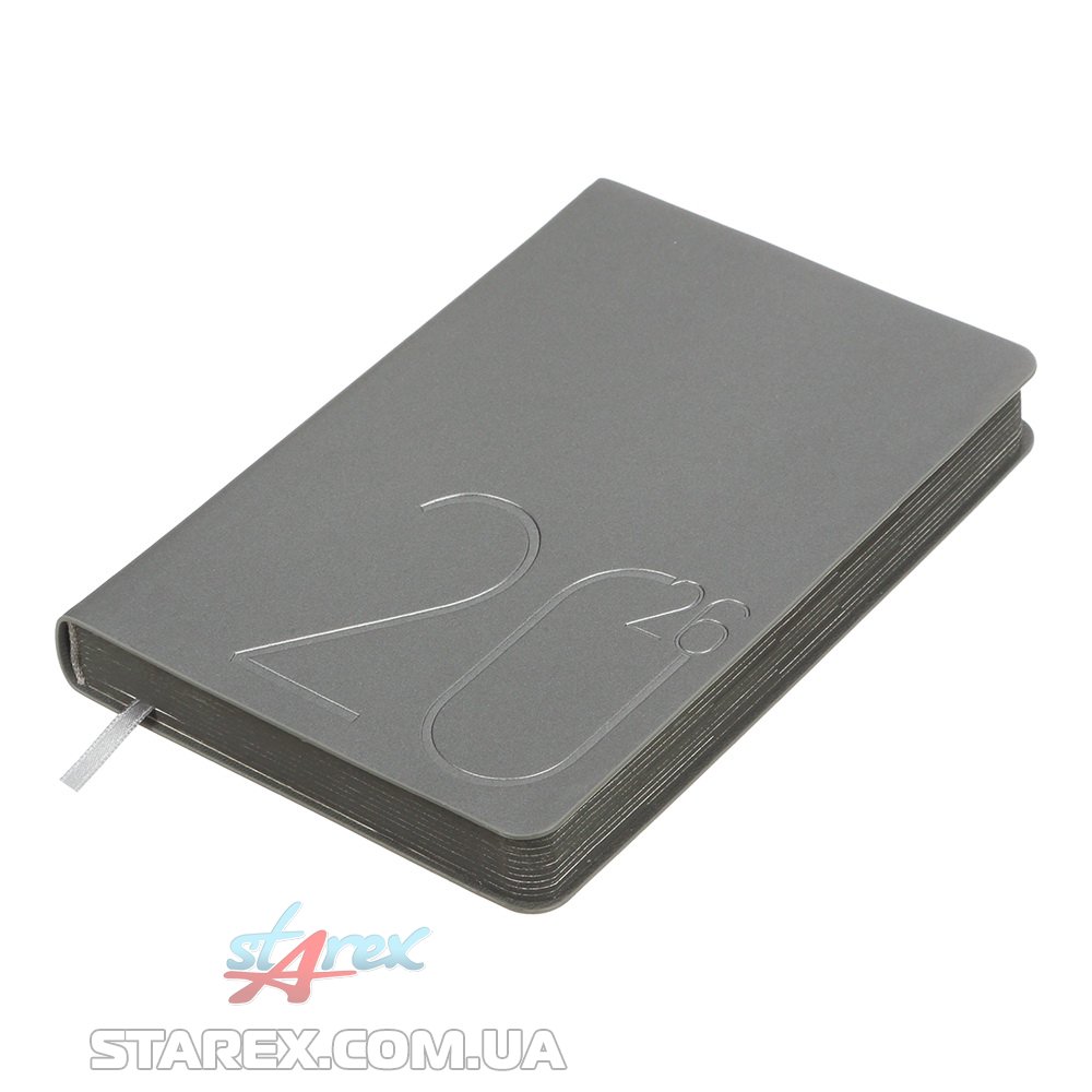 Гнучка обкладинка щоденника STEEL виконана з штучної шкіри з оксамитовим ефектом soft-touch та покриттям МЕТАЛІК. Унікальною особливістю моделі є оригінальне декоративне сліпе тиснення року, виконане по лицевій стороні обкладинки. Дизайн гармонійно доповнює тонування зрізу внутрішнього блоку в колір обкладинки